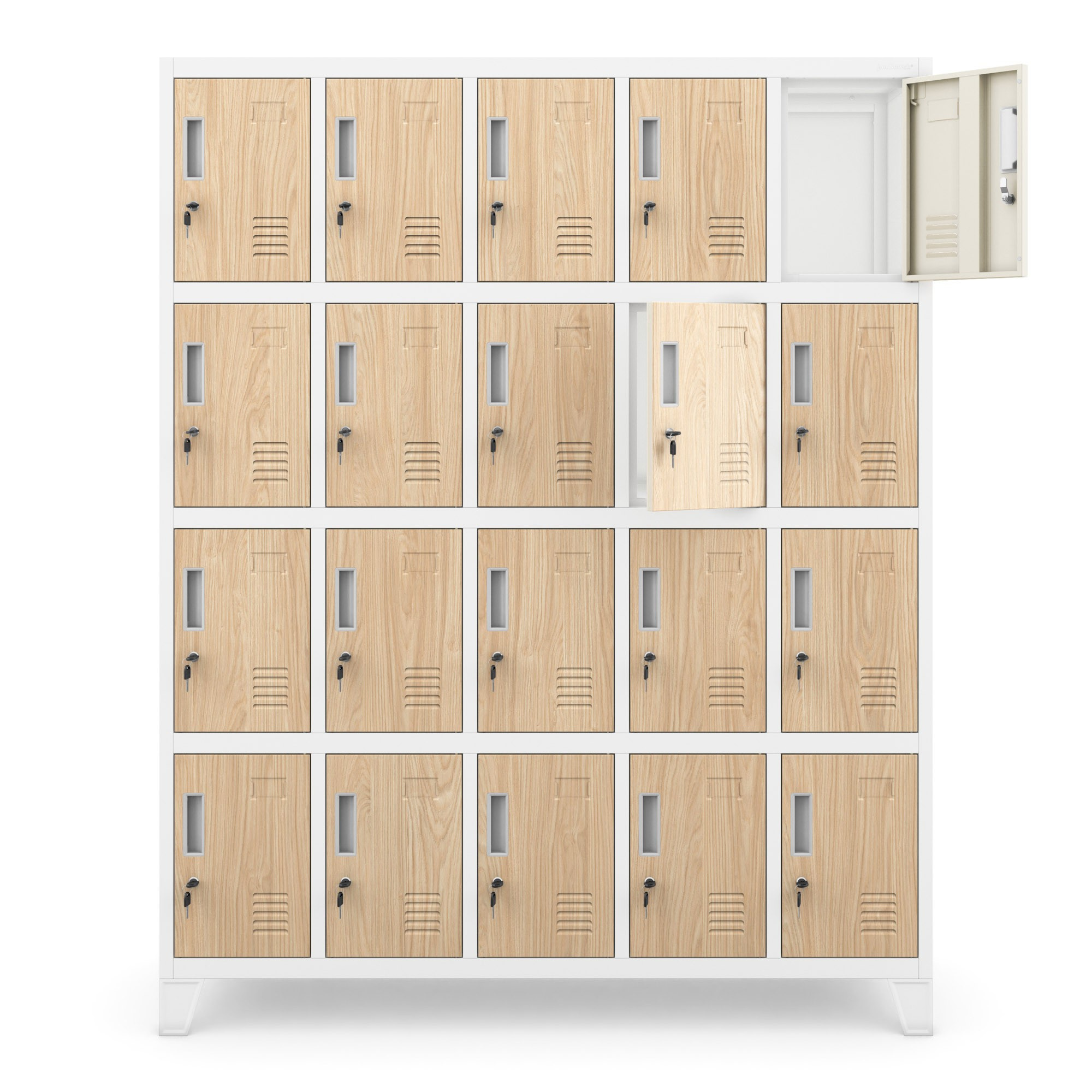 - Bezpečné uzamykání: Každá přihrádka je vybavena jednobodovým zámkem.