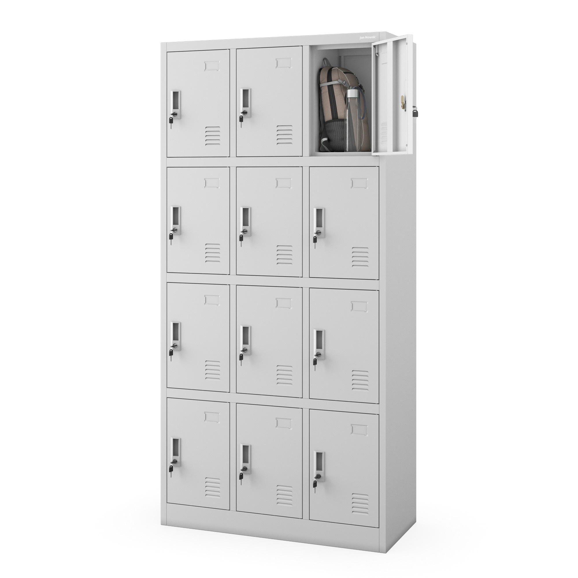 Skříň MARCIN je navržena s ohledem na maximální bezpečnost a soukromí. Každá ze 12 uzamykatelných skříněk poskytuje dostatek prostoru pro uložení osobních věcí, oblečení i dokumentů. Díky tomu je skříň ideální pro ukládání cenných předmětů a důležitých dokumentů v souladu s platnými předpisy GDPR.