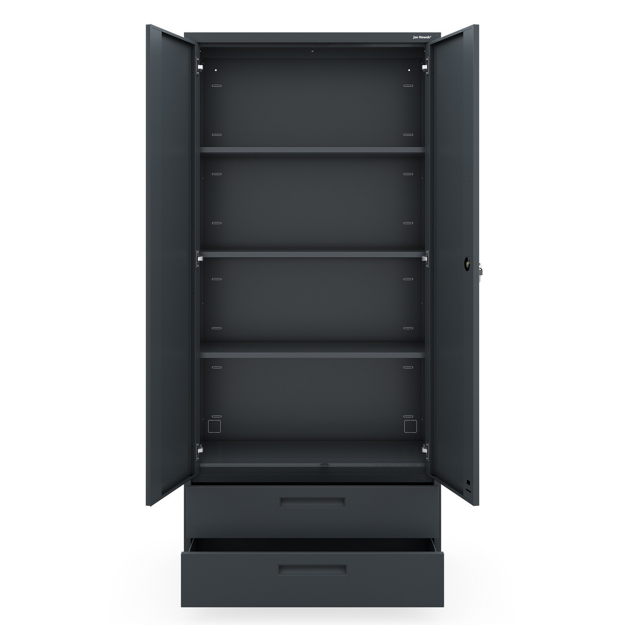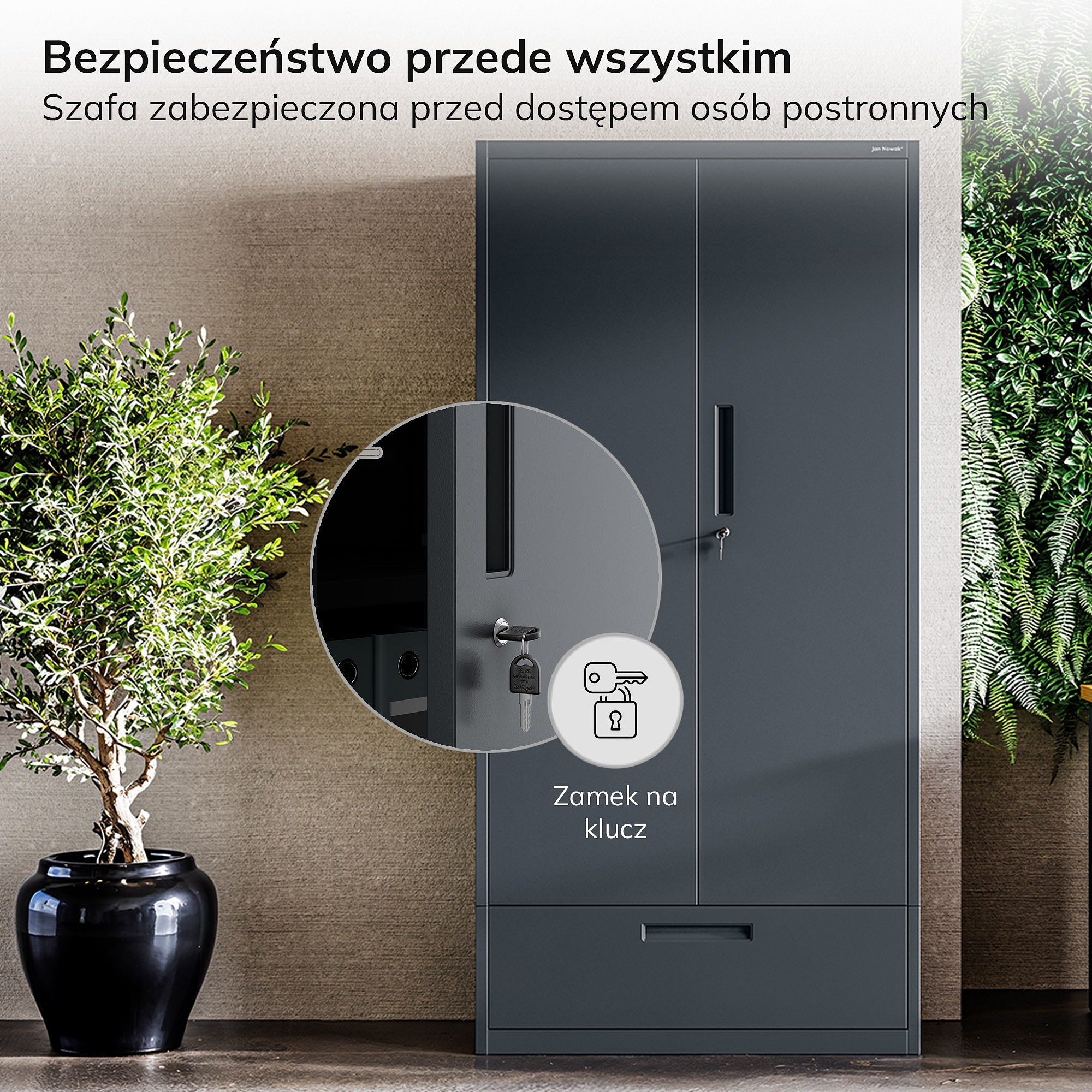 Kovová skříň MEGAN – antracitová, dvojitá zásuvka, 195 cm