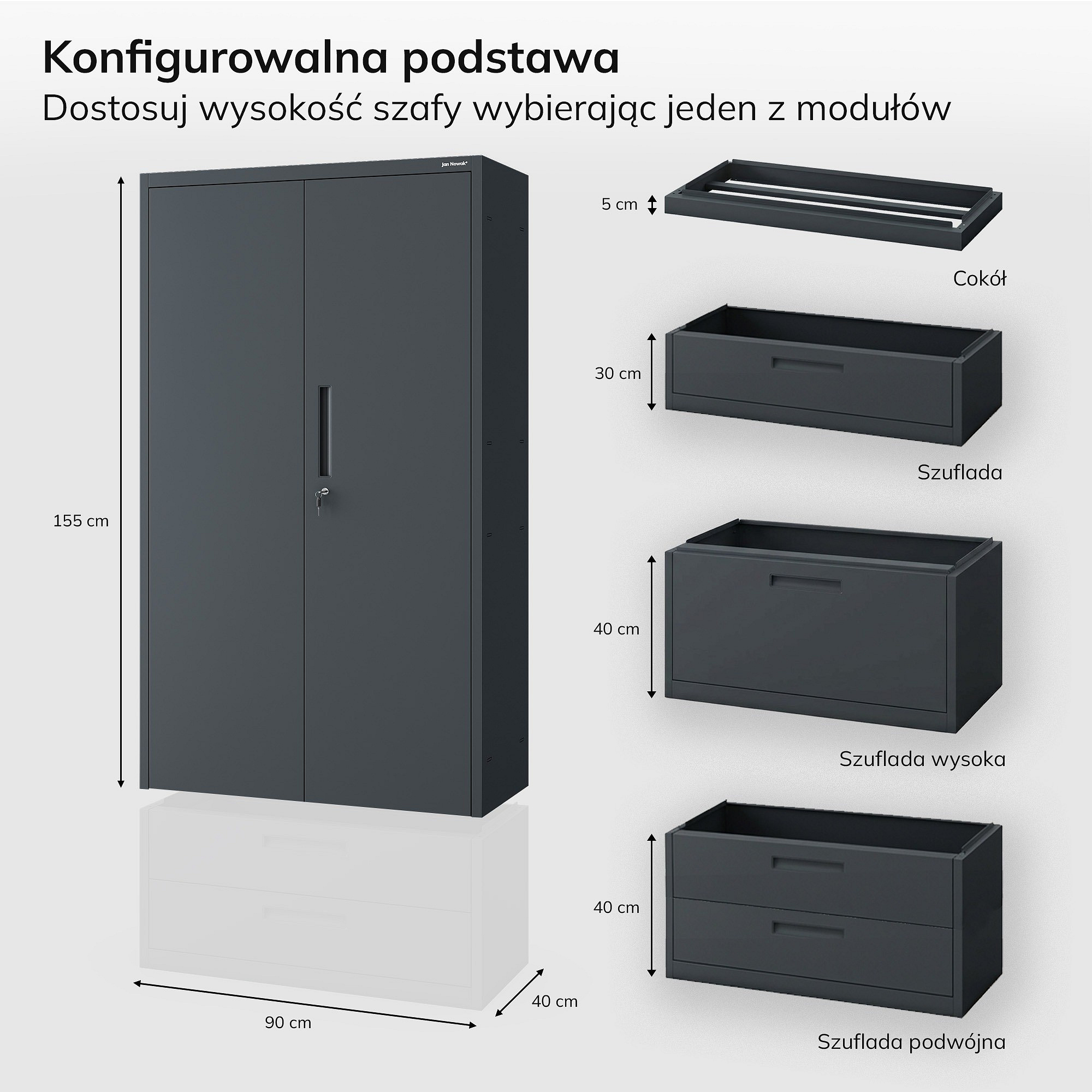 - Konfigurovatelná základna: Vyberte si sokl nebo zásuvku (nízkou, vysokou nebo dvojitou) a přizpůsobte skříň svým specifickým požadavkům.