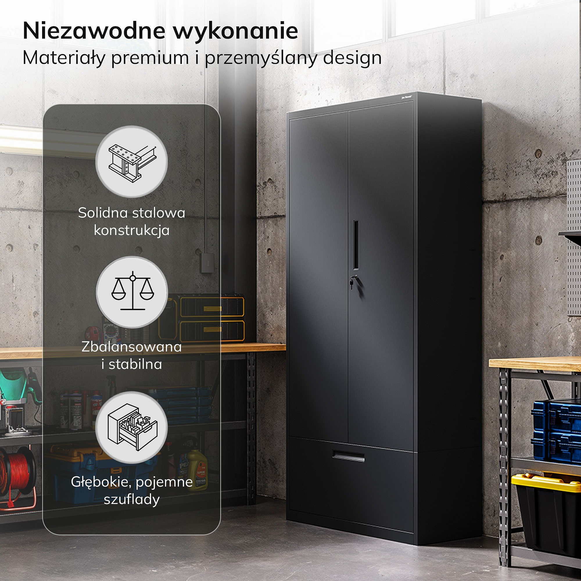 Kovová skříň MEGAN – černá, jedna zásuvka, 185 cm