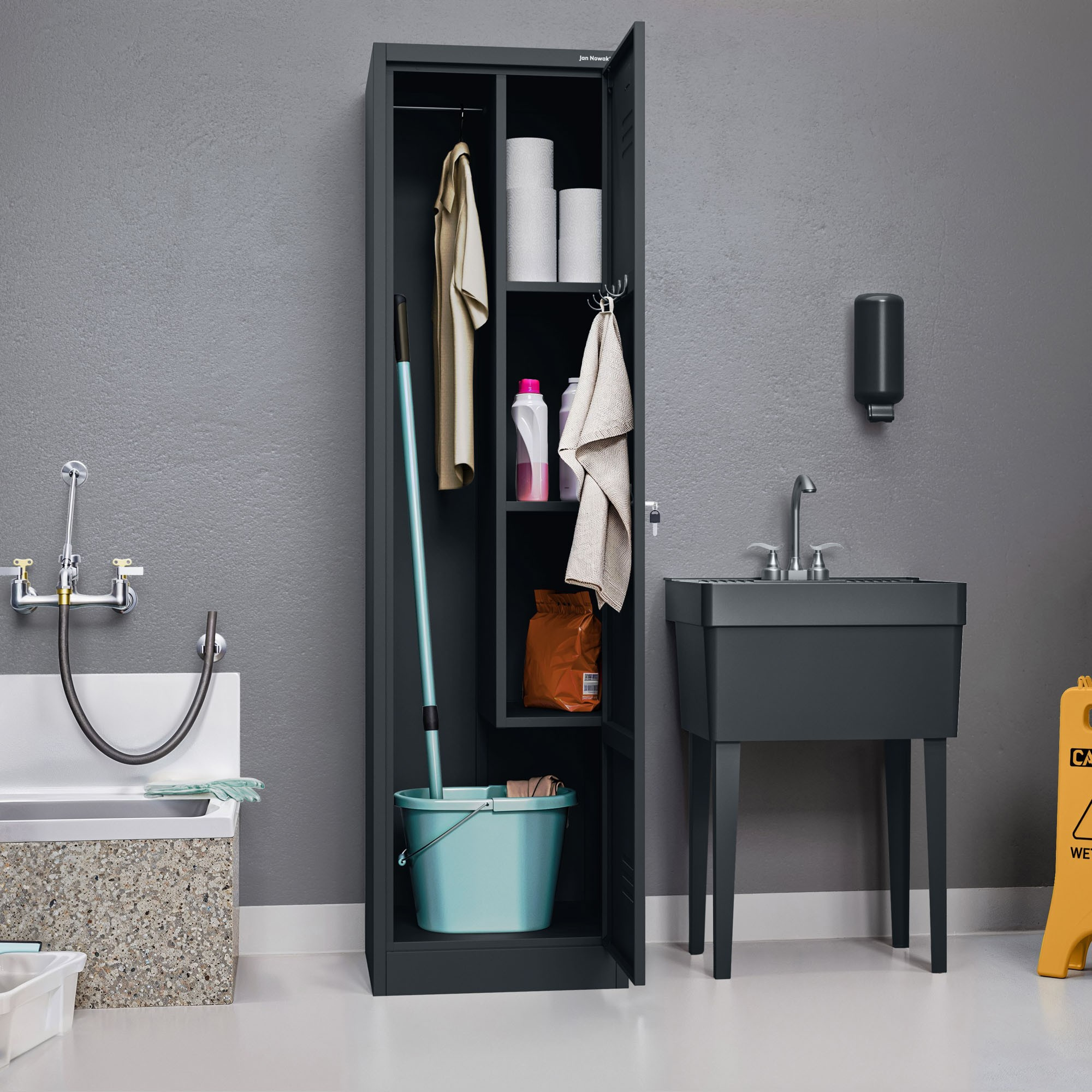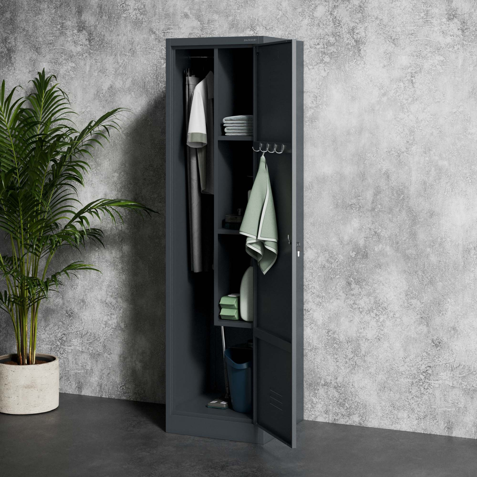 Antracitová kovová úklidová skříň AGNES – Uspořádejte si svůj prostor s elegancí a efektivitou!