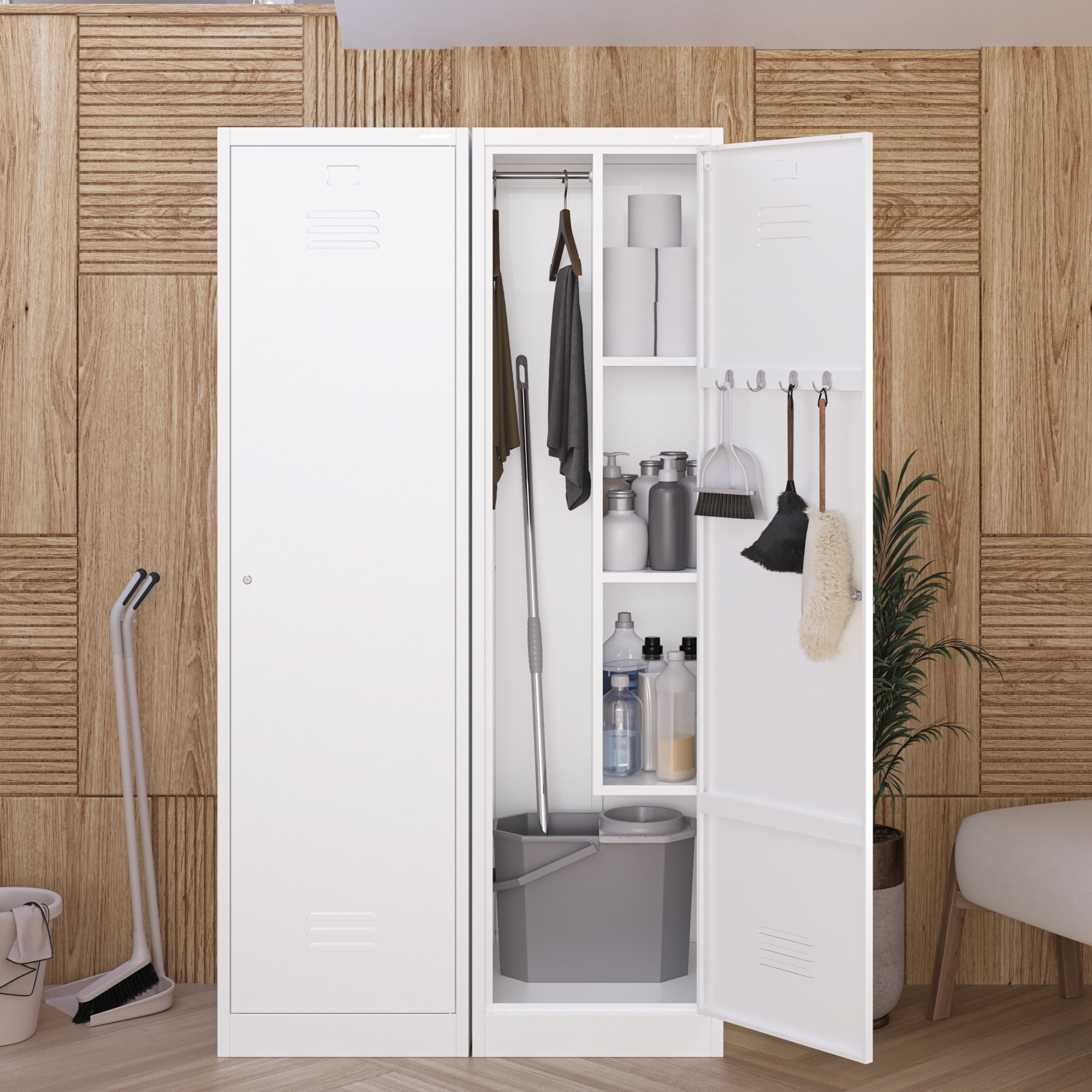 Hledáte dokonalé řešení pro uspořádání úklidových prostředků a pomůcek? Představujeme vám kovovou úklidovou skříň AGNES, která kombinuje robustní konstrukci, promyšlený design a praktické funkce. S touto skříní získáte nejen úložný prostor, ale i elegantní doplněk do vaší úklidové místnosti, dílny nebo garáže.