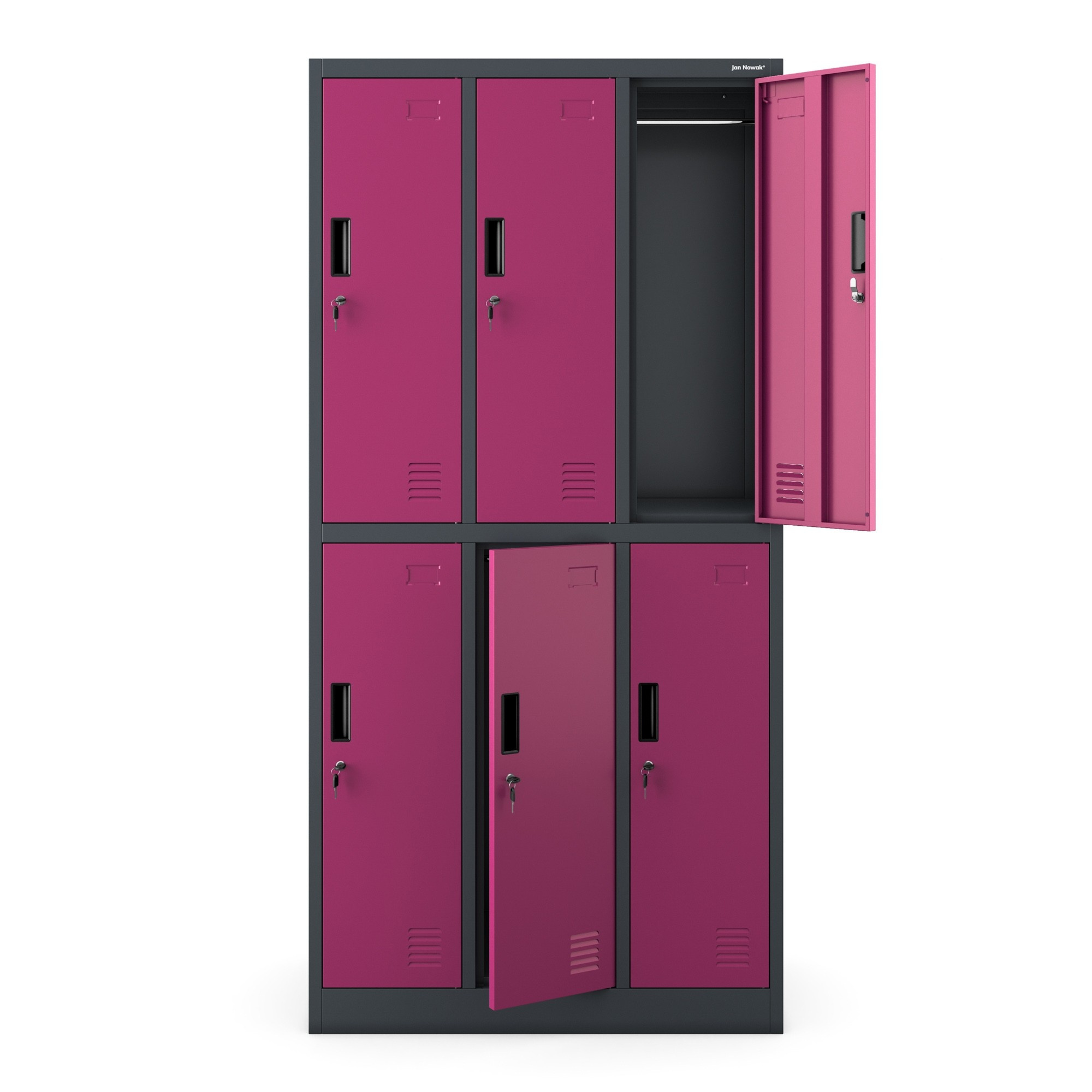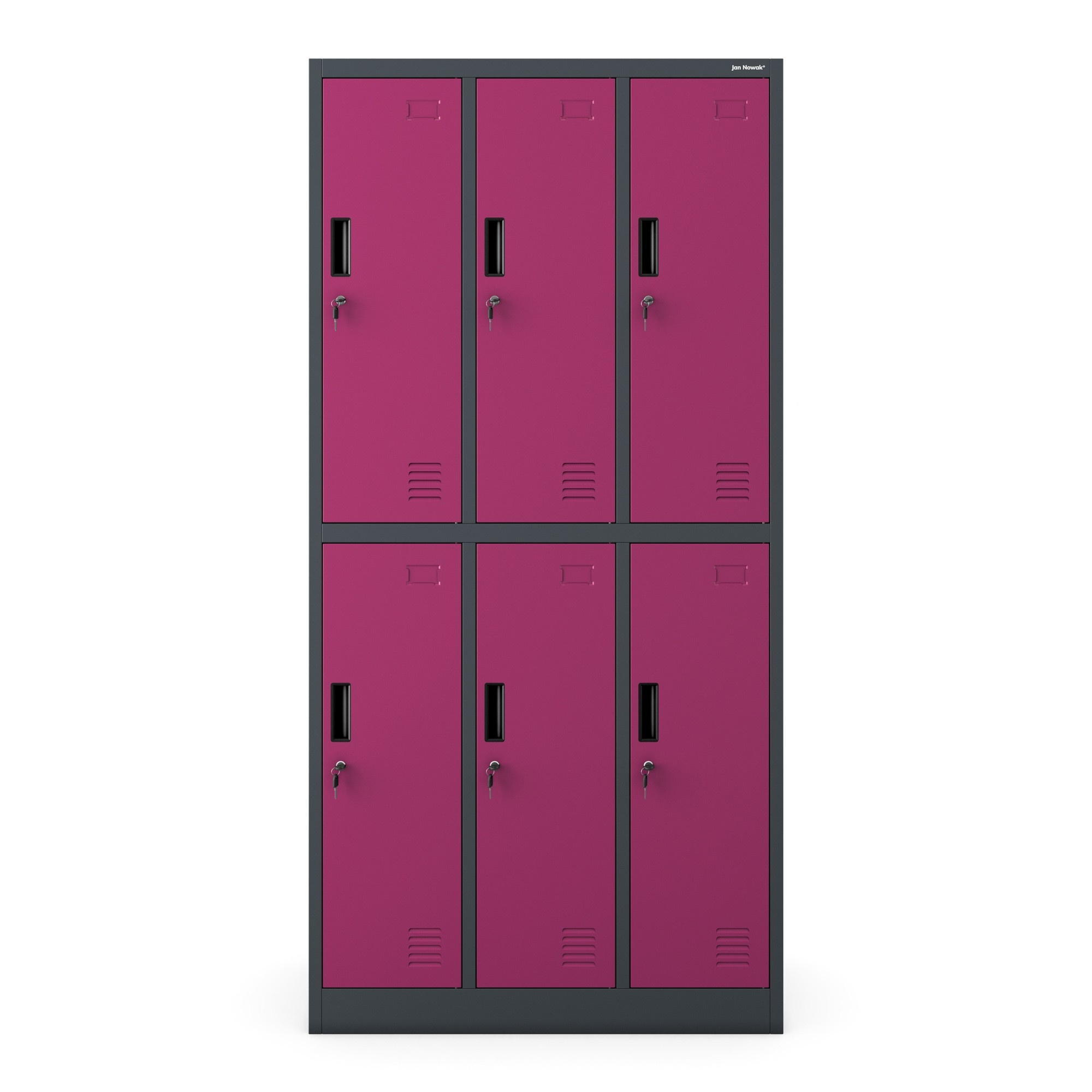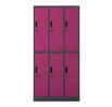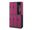 Kovová uzamykatelná šatní skříňka fuchsiová: s 6 boxy IGOR, 900 x 1850 x 450 mm