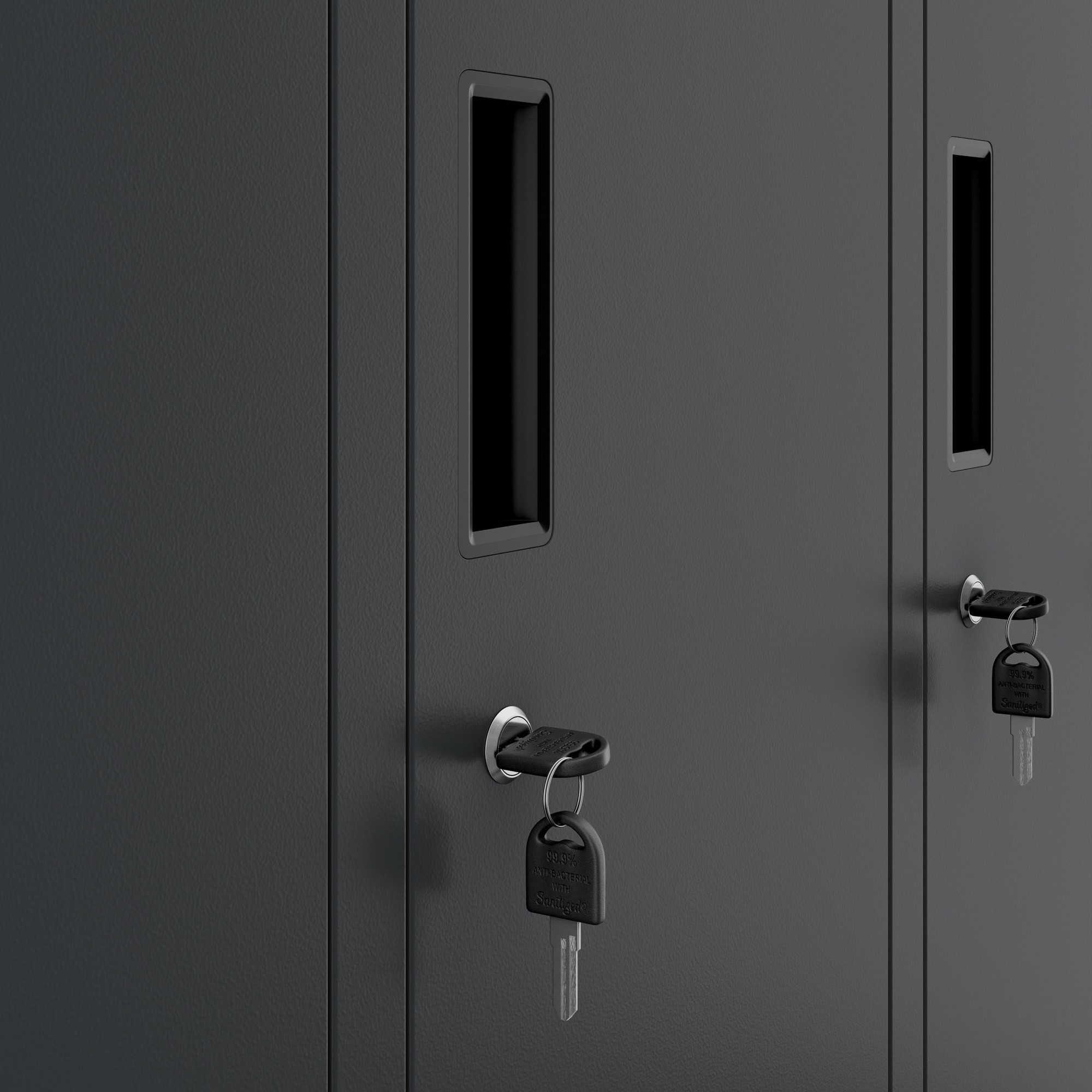 Každá přihrádka skříně BARTEK je vybavena spolehlivým zámkem na klíč, který zaručuje bezpečné uložení osobních věcí. Vaši zaměstnanci, studenti nebo klienti se tak nemusí obávat o své cennosti a mohou se plně soustředit na svou práci nebo aktivity.