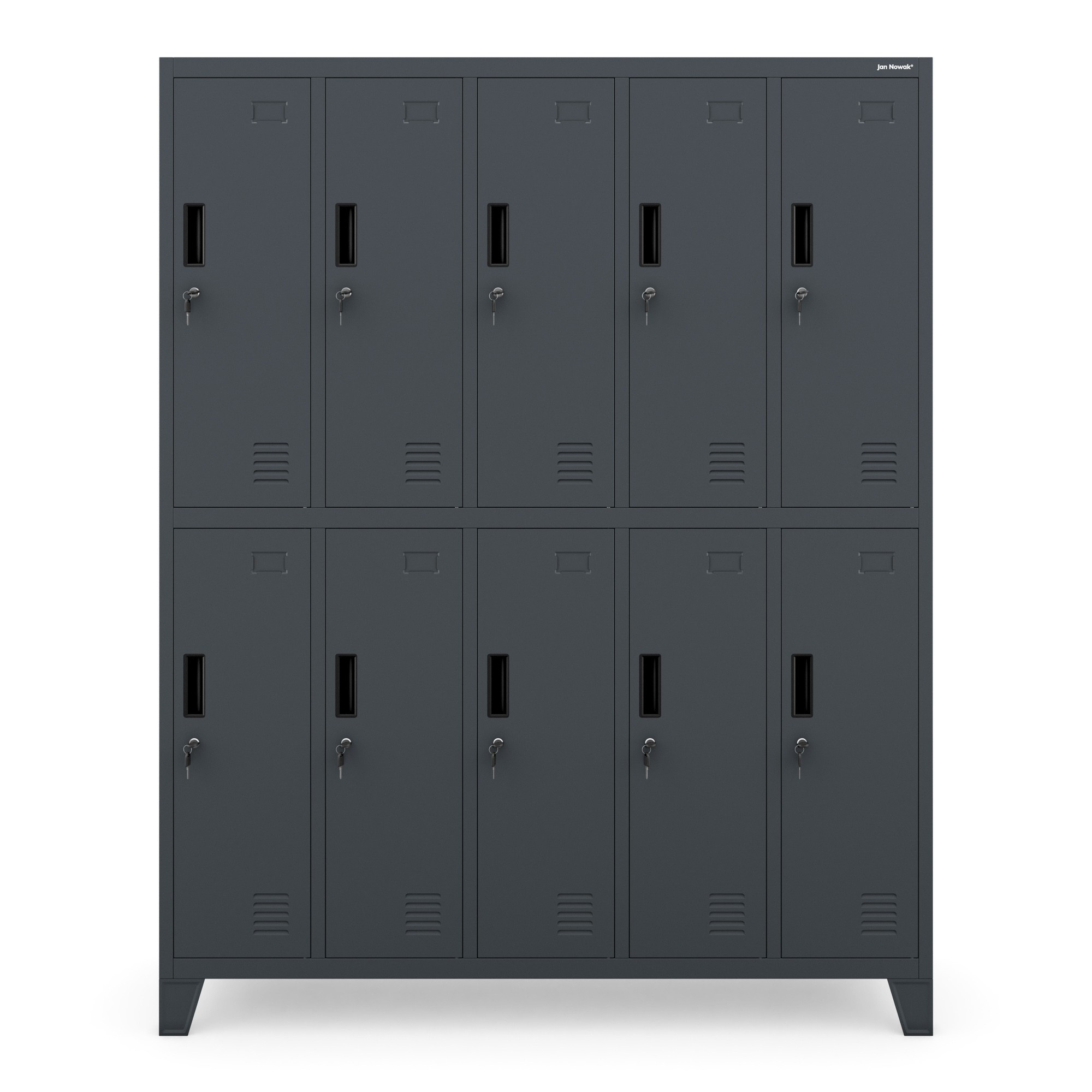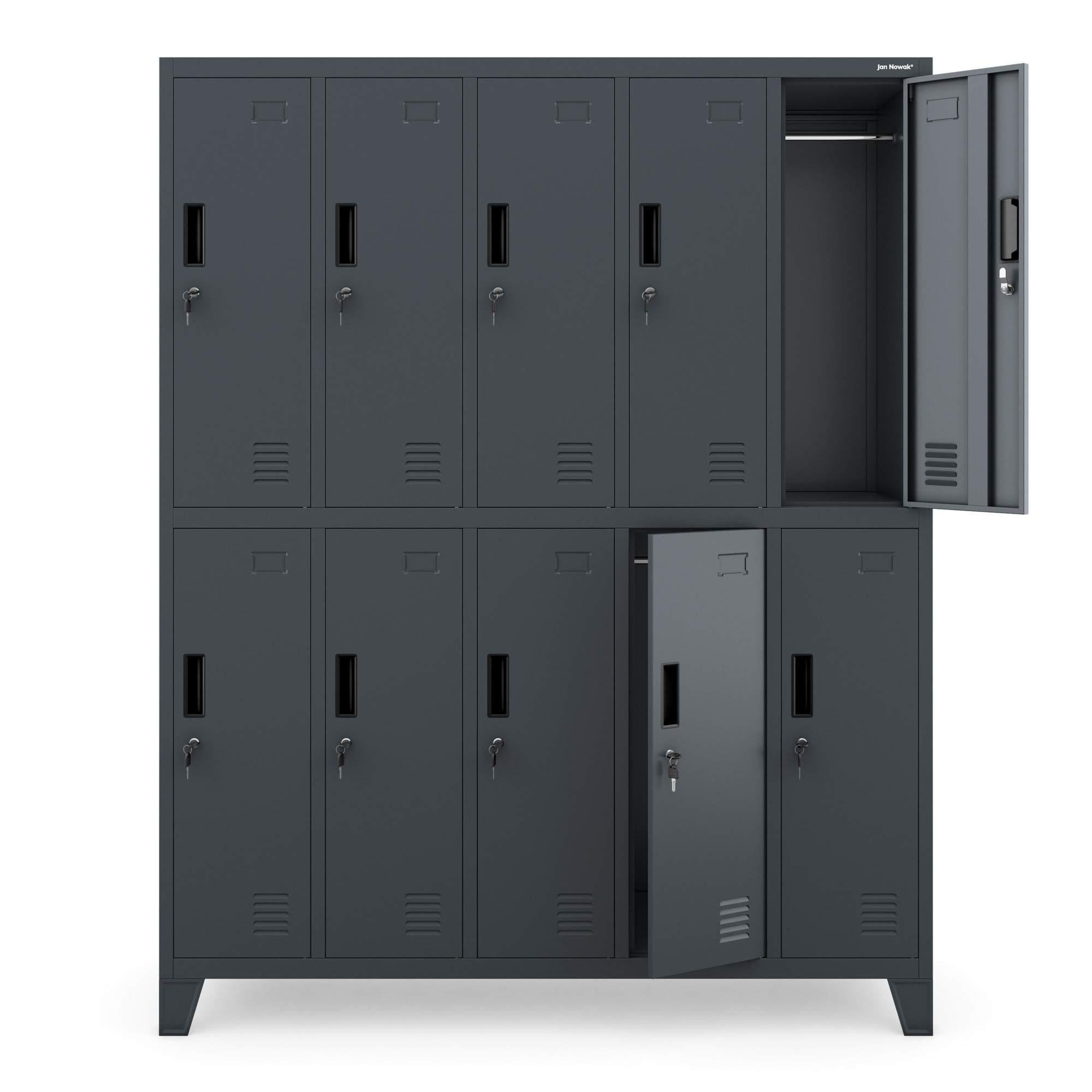 - 10 prostorných přihrádek: Každý uživatel má k dispozici vlastní uzamykatelný prostor.