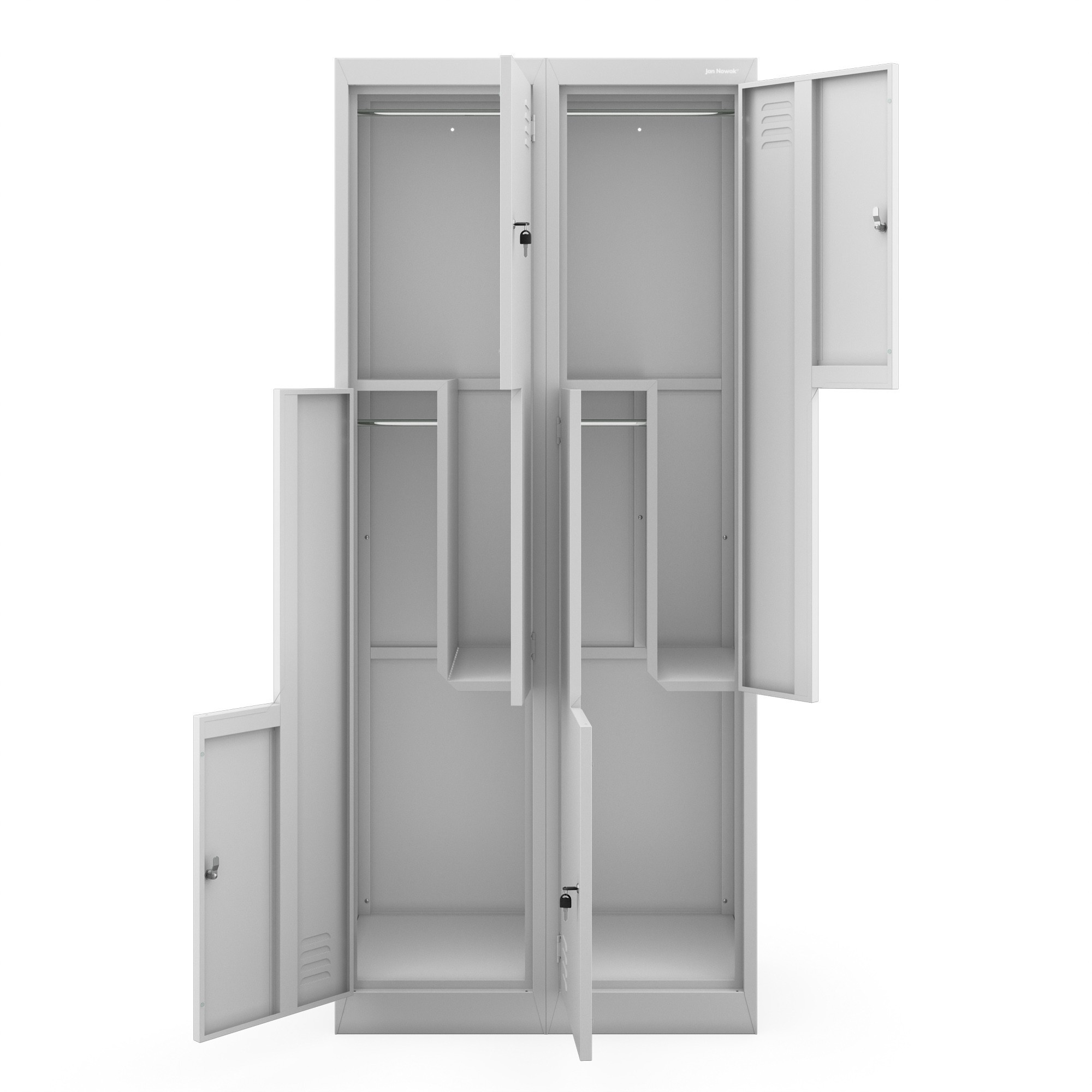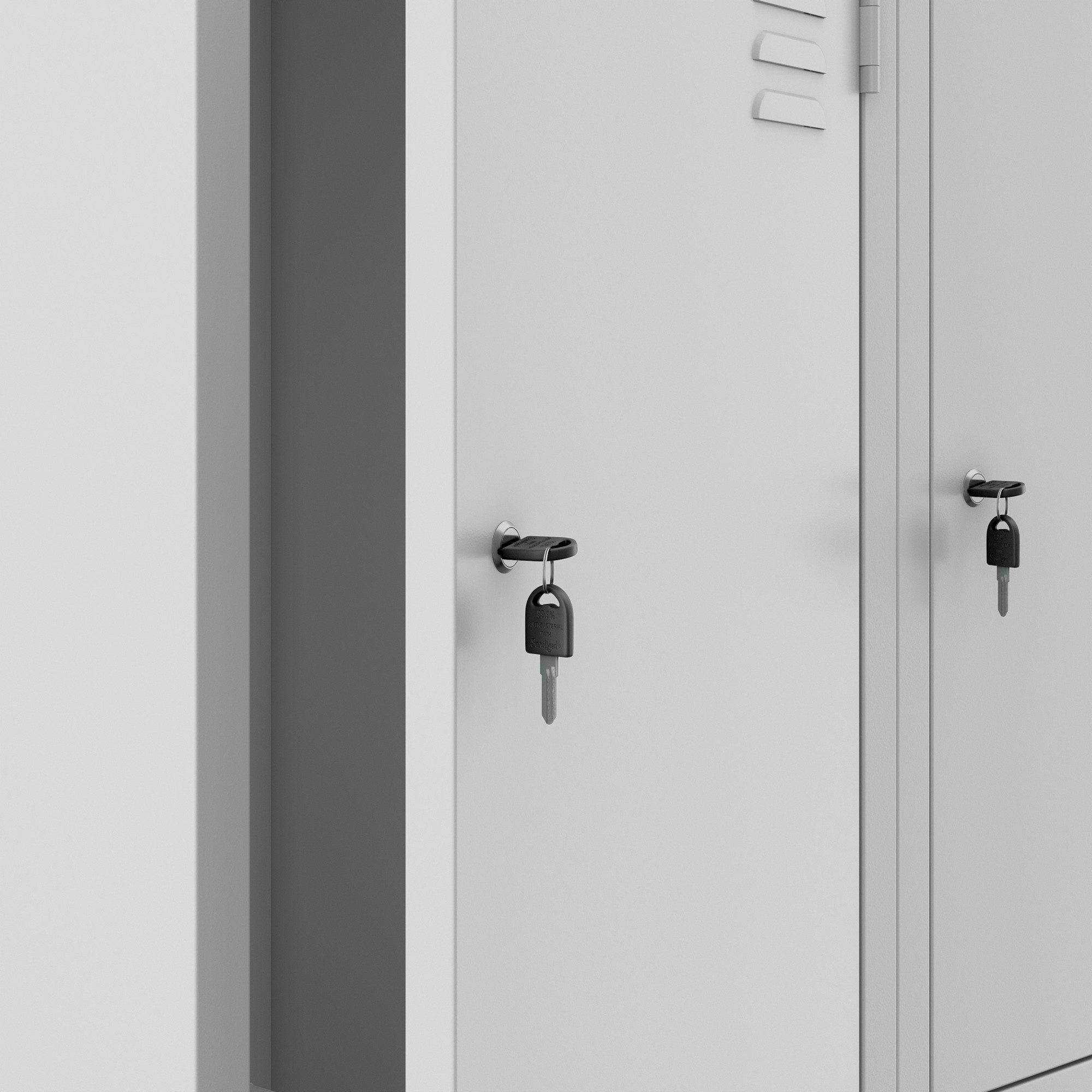 Bezpečnost především: Každá skříňka je vybavena kvalitním zámkem, který chrání uložené věci před neoprávněným přístupem. Můžete tak bez obav ukládat osobní věci, pracovní nástroje, dokumenty a další cennosti.