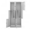 Kovová uzamykatelná šatní skříňka na oděvy čtyřkomorová JULIA, 800 x 1850 x 450 mm, šedá