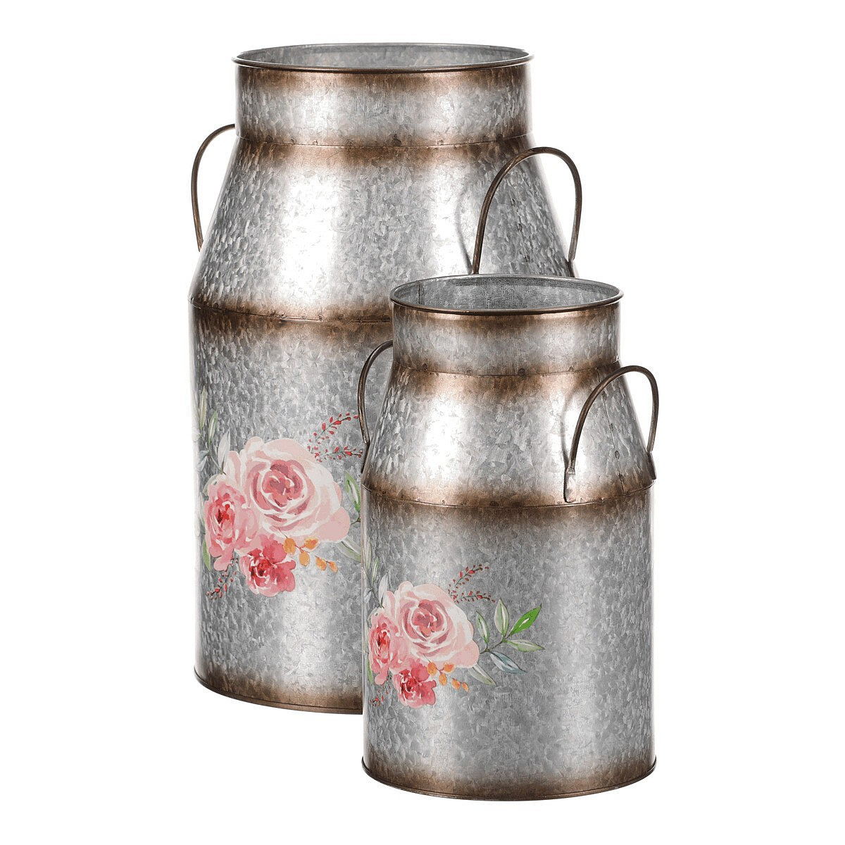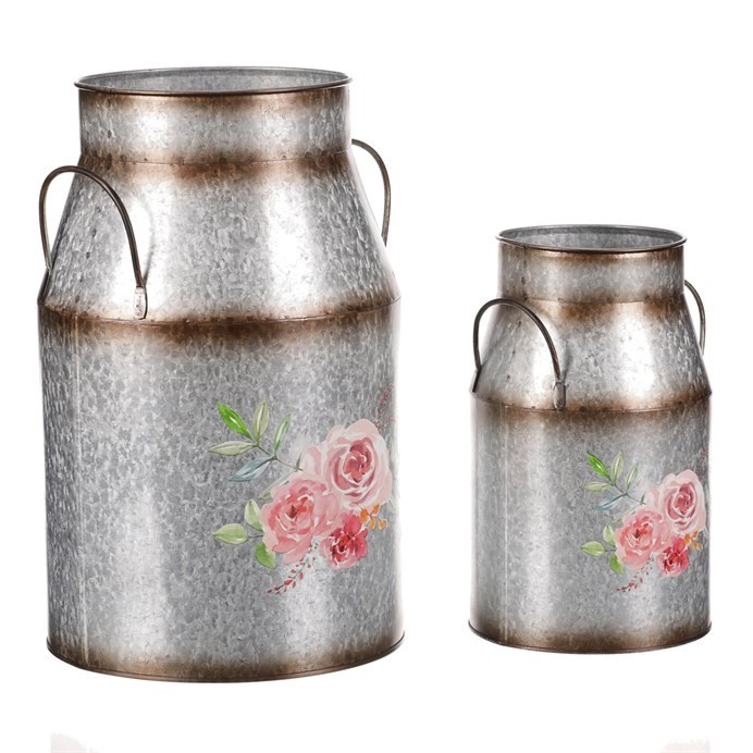 Kovová váza, sada 2ks. Design s růžemi.