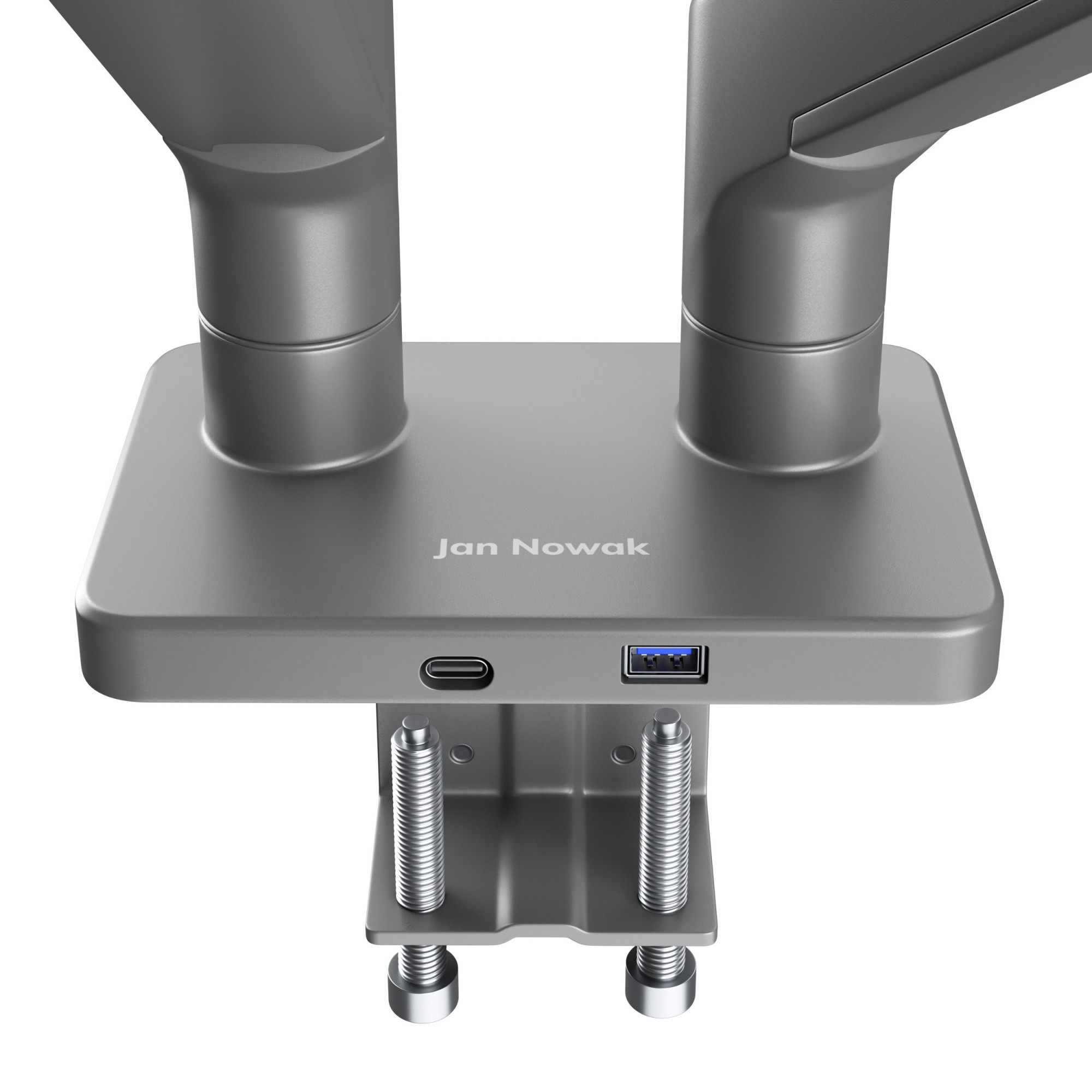 Držák JAKE je vybaven vestavěným USB hubem s porty USB-C a USB 3.0, který vám usnadní připojení vašich zařízení a příslušenství. Můžete snadno nabíjet svůj telefon, připojit externí disk nebo flash disk, aniž byste museli sahat pod stůl k počítači.
