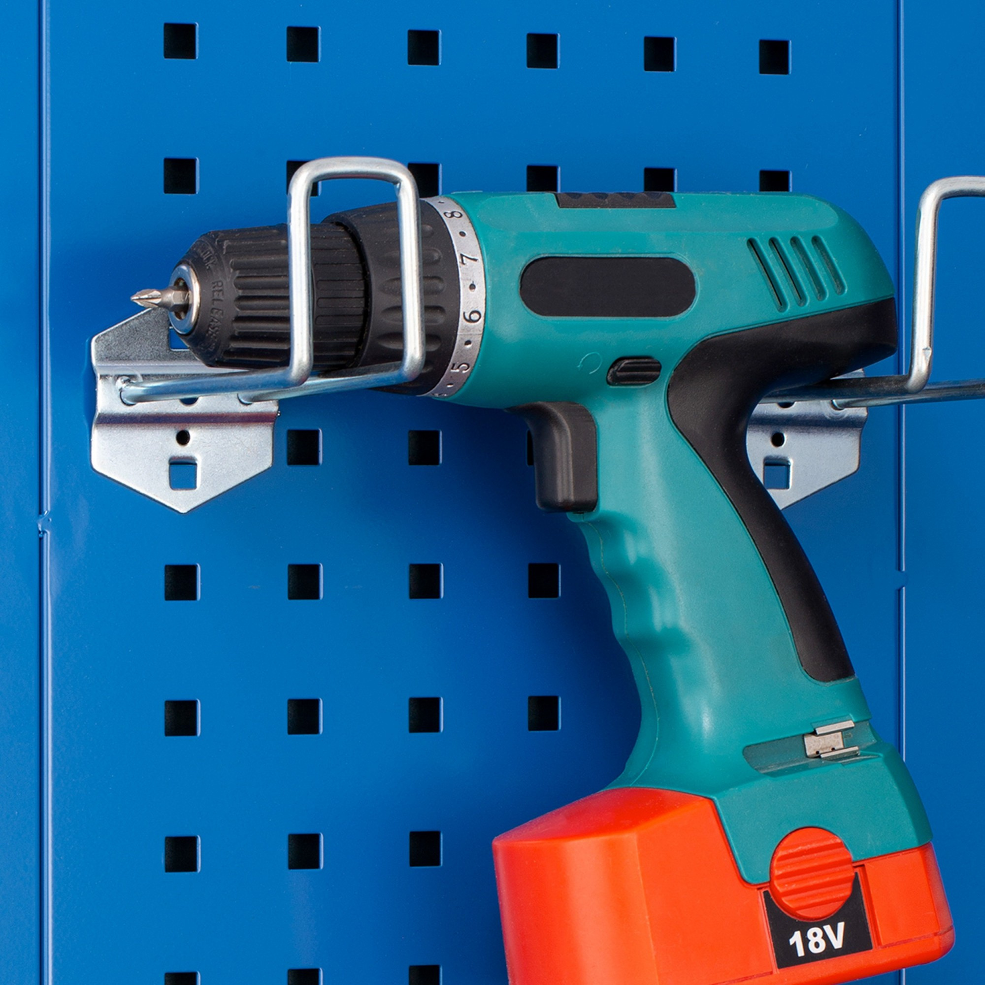 Dvojitý uzavřený hák je navržen tak, aby byl kompatibilní s dílenskými skříněmi BRUNO, DAREK a SZYMON. Můžete ho snadno a rychle připevnit na stěnu skříně a vytvořit si tak praktický úložný prostor pro vaše nářadí a další potřeby.