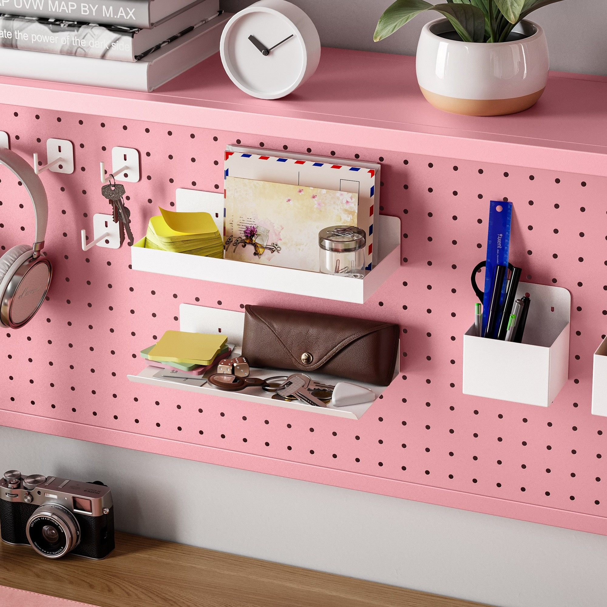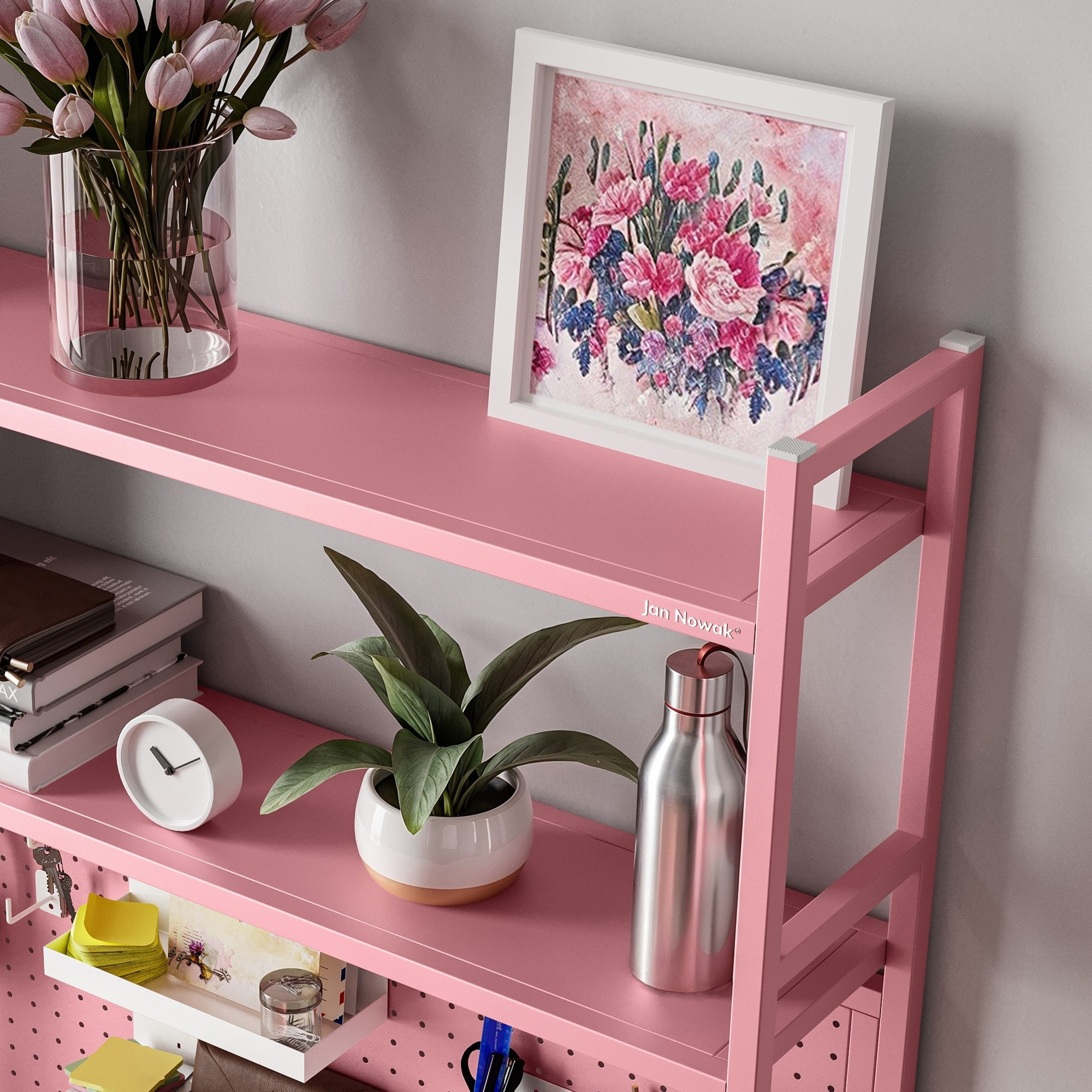 Zapomeňte na ztracené poznámky a zapadlé tužky! Perforovaná deska nástavce JENNY vám umožní individuálně uspořádat veškeré příslušenství. Díky otvorům o průměru 6 mm s roztečí 25 mm si můžete snadno připevnit háčky, držáky a další doplňky (dostupné samostatně), a vytvořit si tak dokonalý systém pro ukládání psacích potřeb, nářadí nebo dekorací.