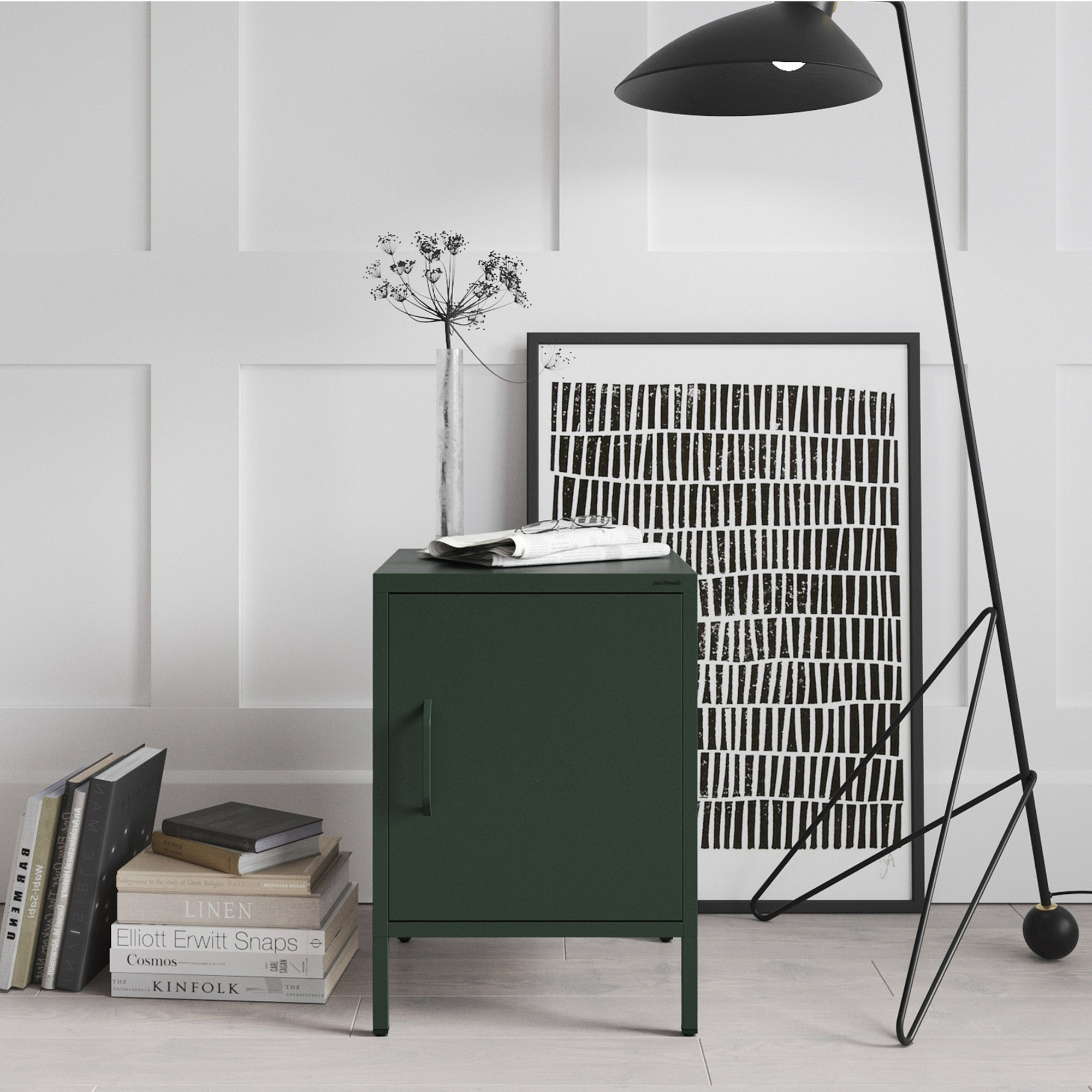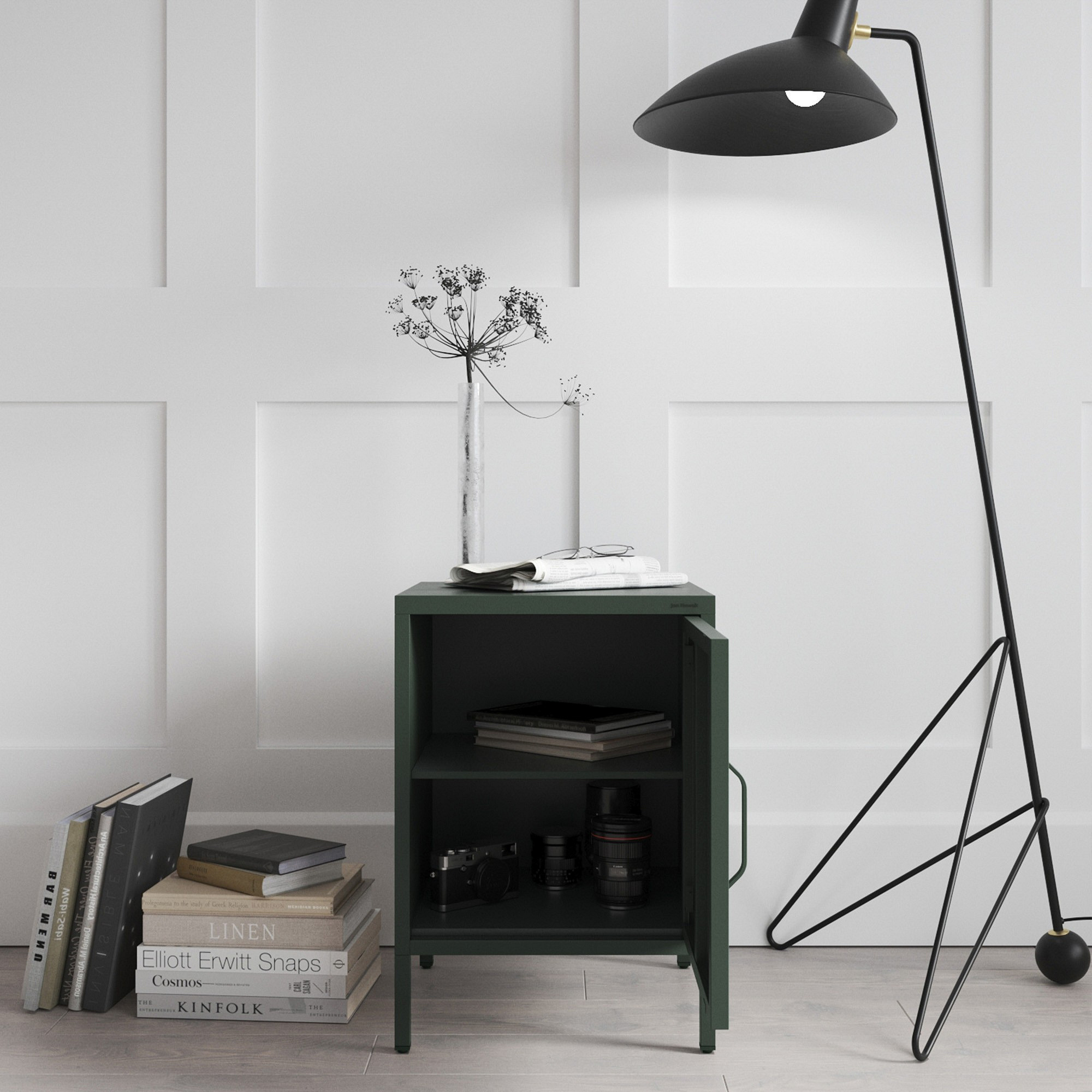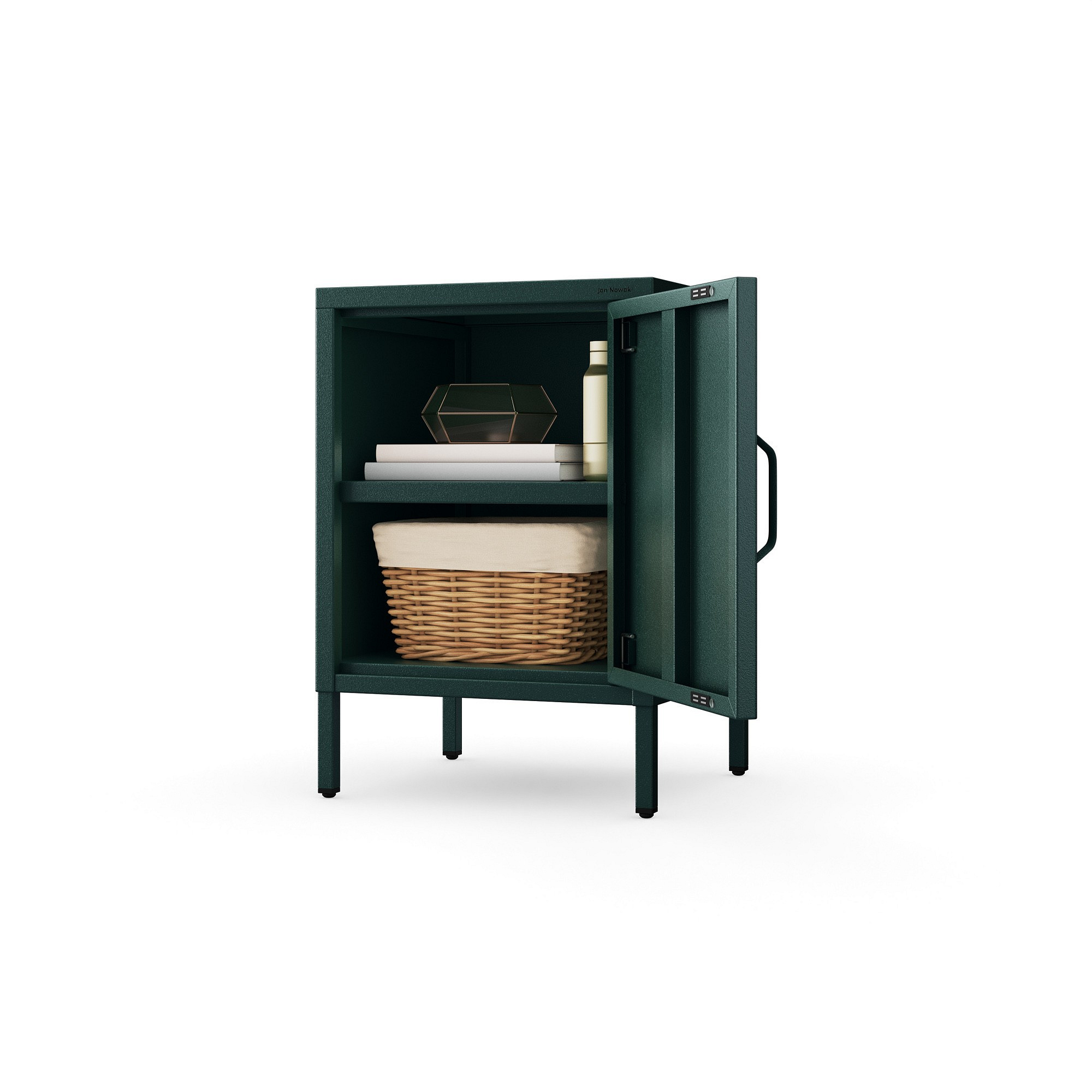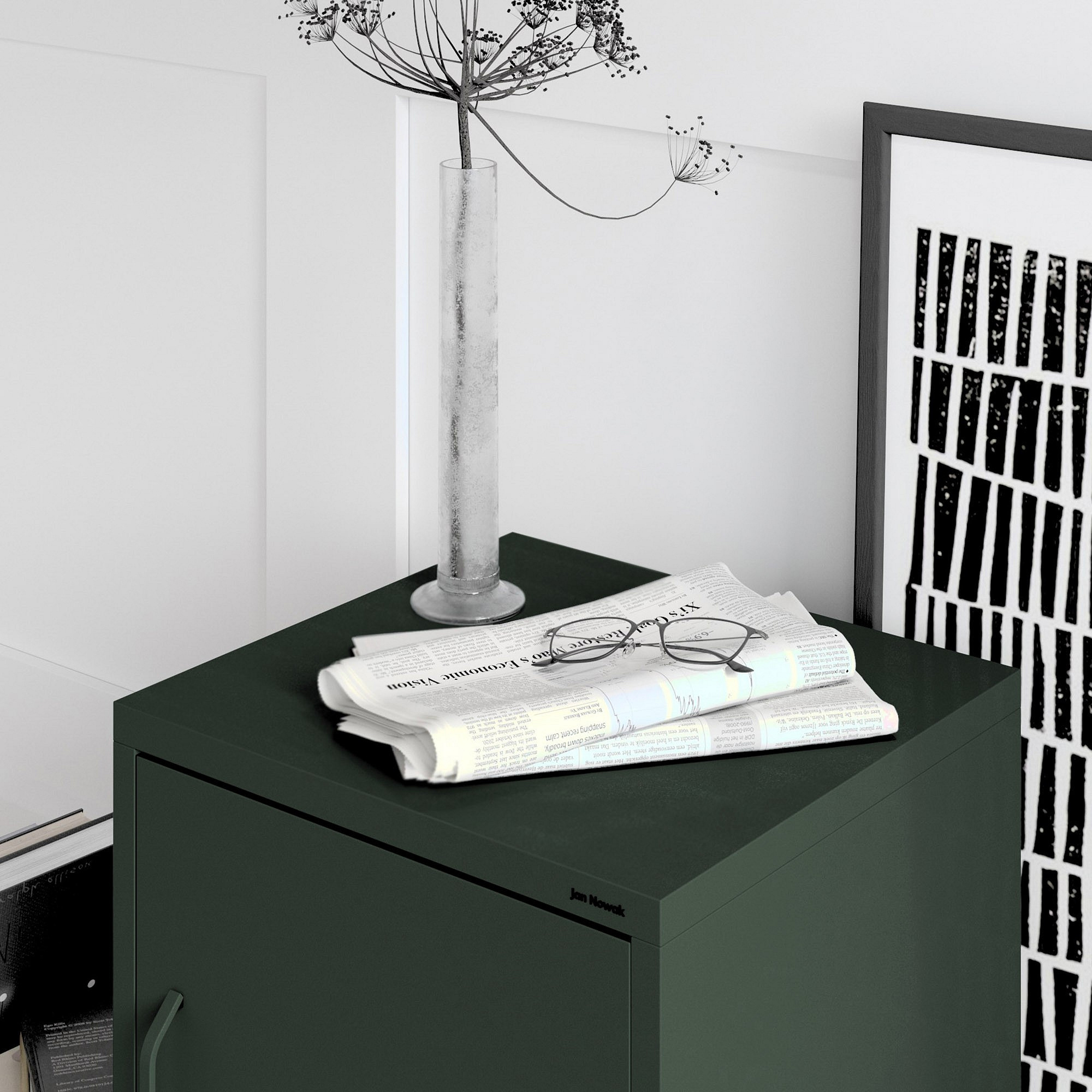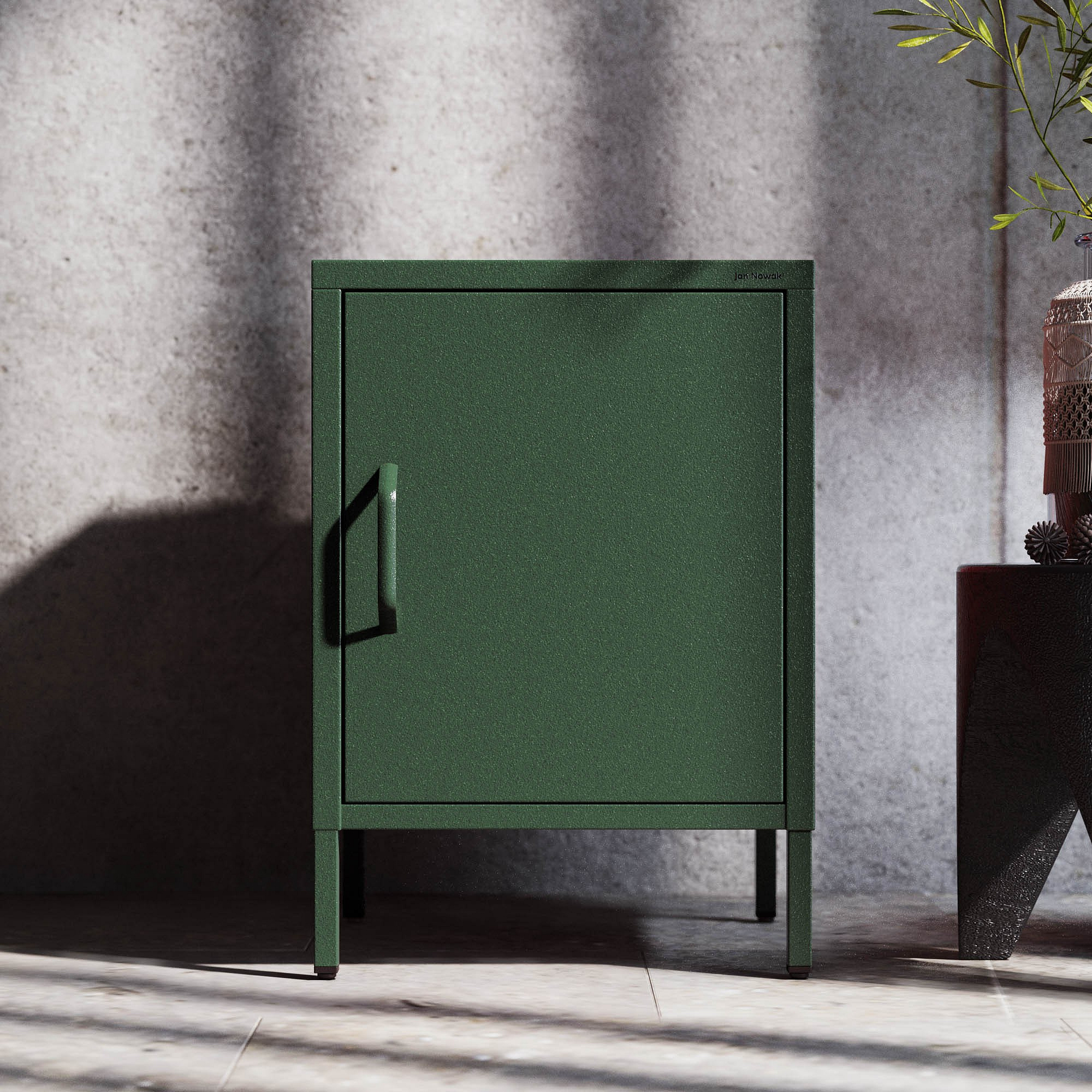 Kovový noční stolek lahvově zelený Modern MIA, 424 x 595 x 400 mm