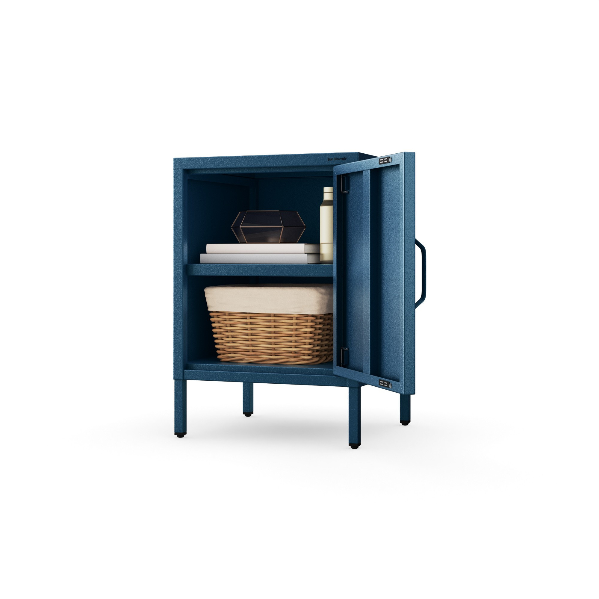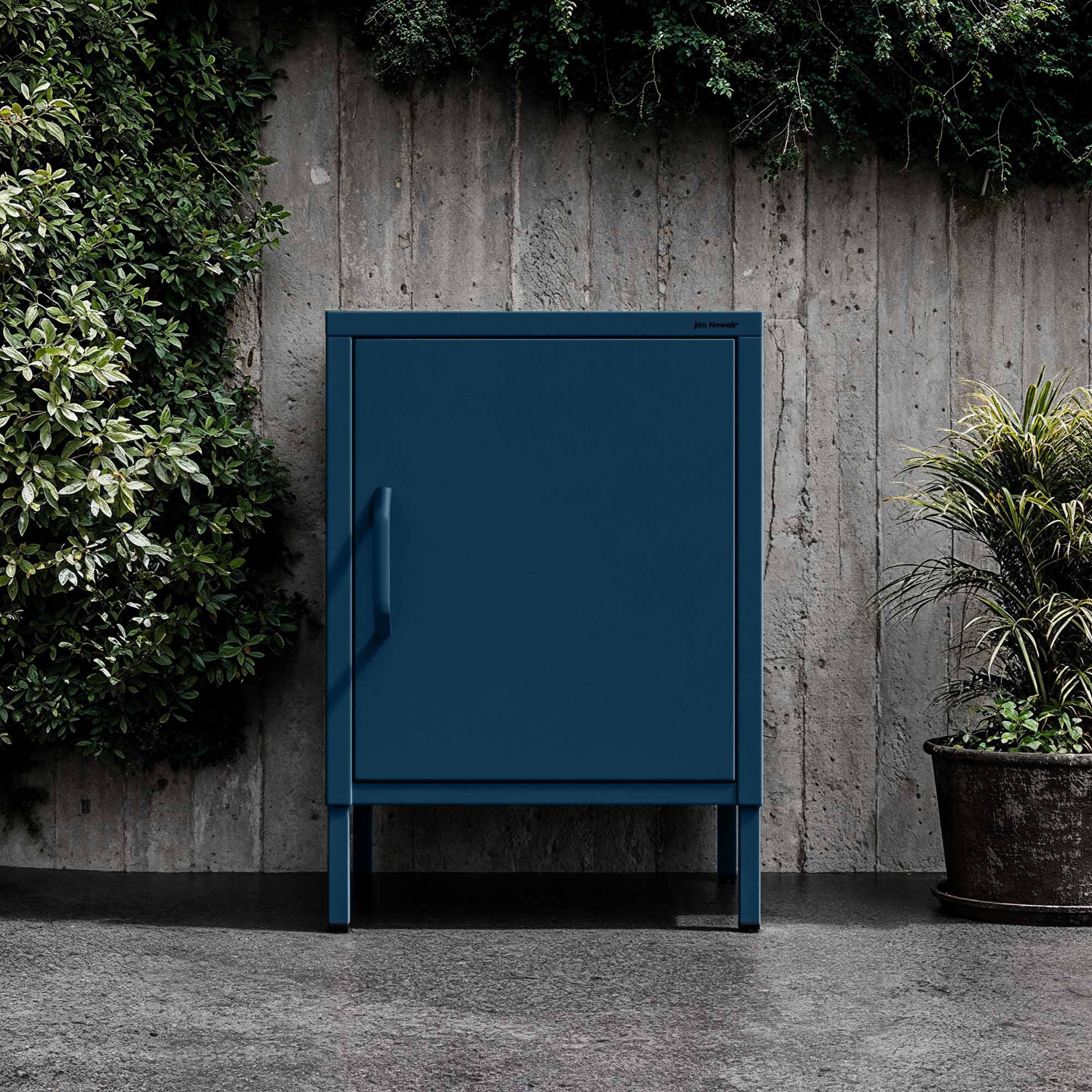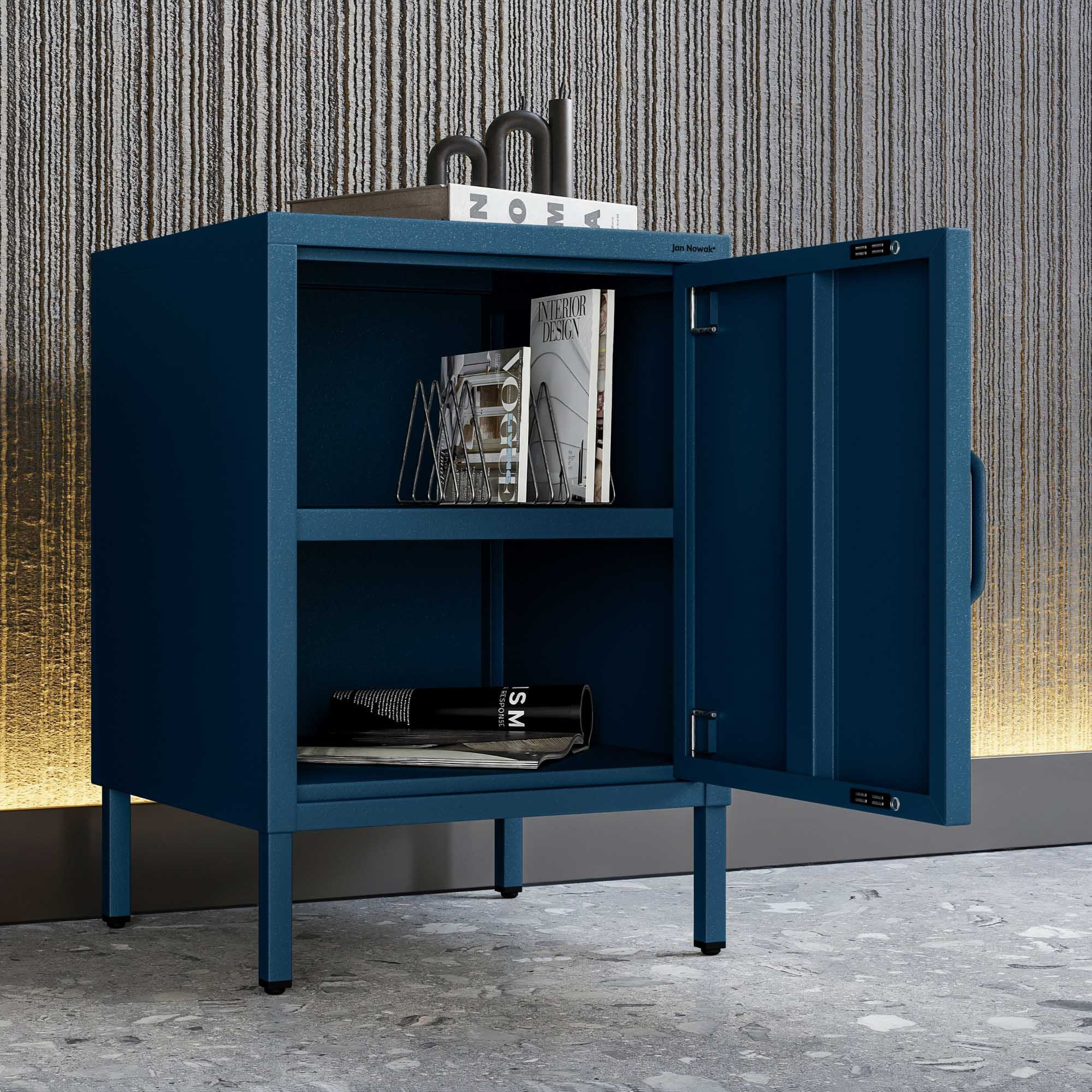 Kovový noční stolek modrý Moderní MIA, 424 x 595 x 400 mm