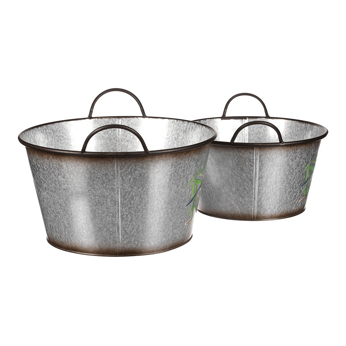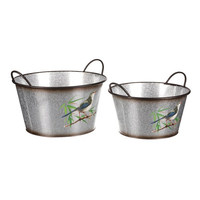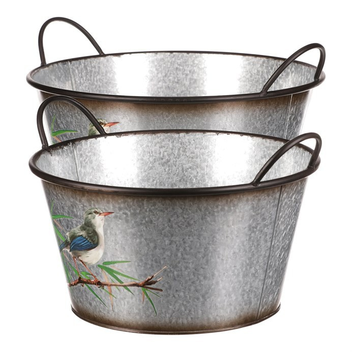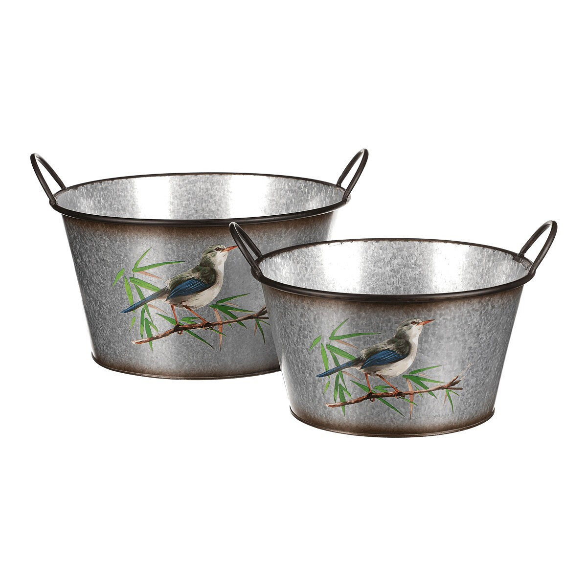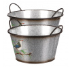Kovový obal na květiny, sada 2ks, design s ptáčky.