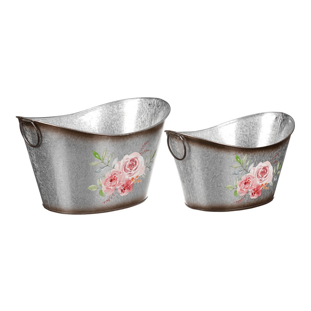 Kovový obal na květiny. Sada 2ks. Design s růžemi.