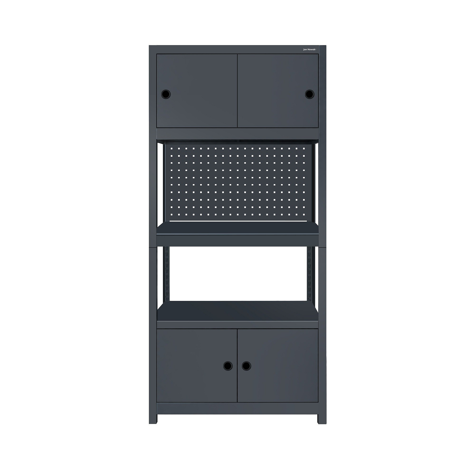 Kovový regál s antracitovými skříňkami: JOHNNY, 1800 x 800 x 420 mm