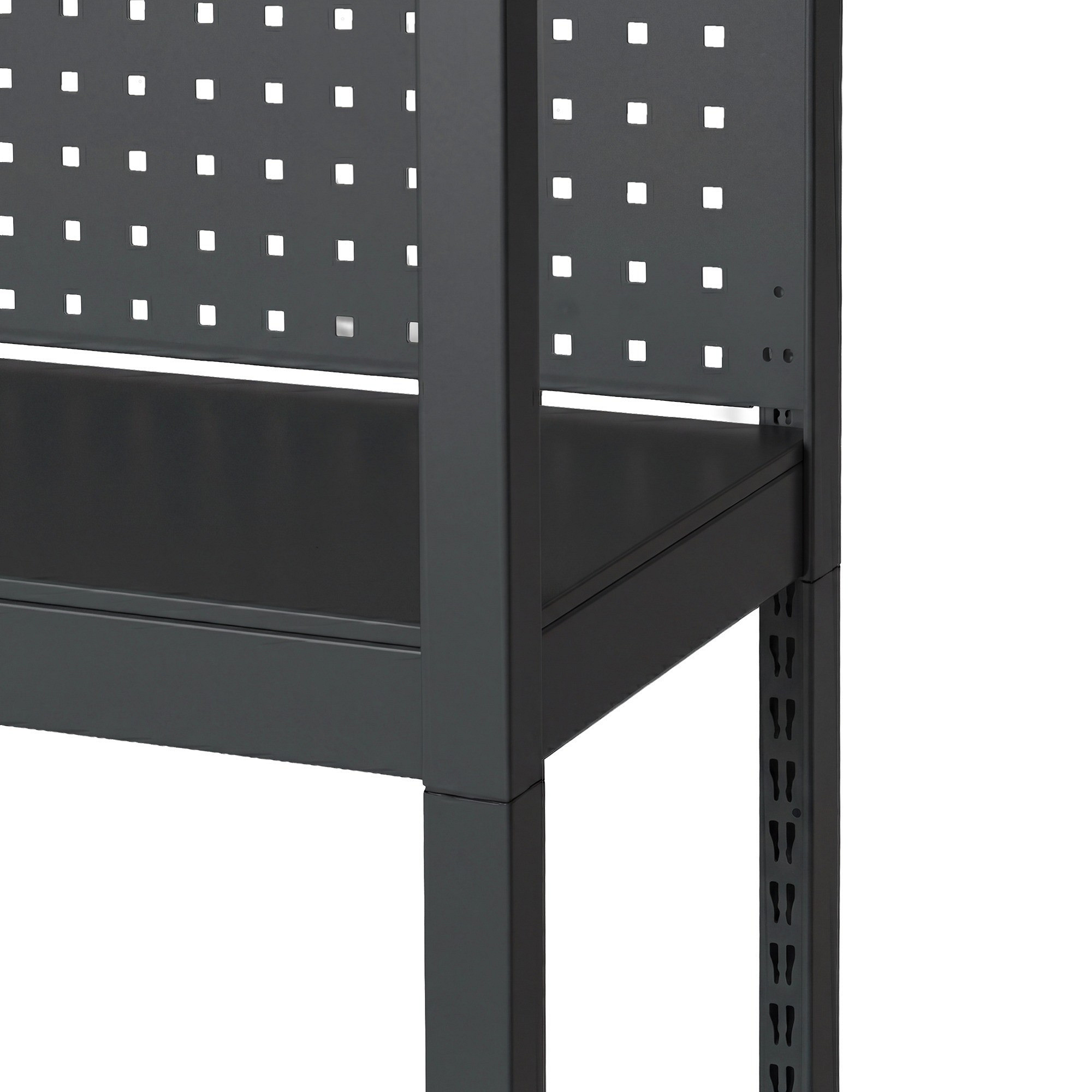K sestavení regálu JOHNNY nepotřebujete žádné speciální nářadí ani odborné dovednosti. Západky a perforované profily nabízejí intuitivní a rychlou montáž. Regál můžete snadno kombinovat s dalšími regály a vytvořit tak soudržný a funkční pracovní prostor. Kompatibilní s regálem je také boční perforovaná deska pro další příslušenství pegboard, jako jsou háčky, držáky a organizéry. Díky tomu si můžete průběžně přizpůsobovat nábytek svým individuálním potřebám a požadavkům.