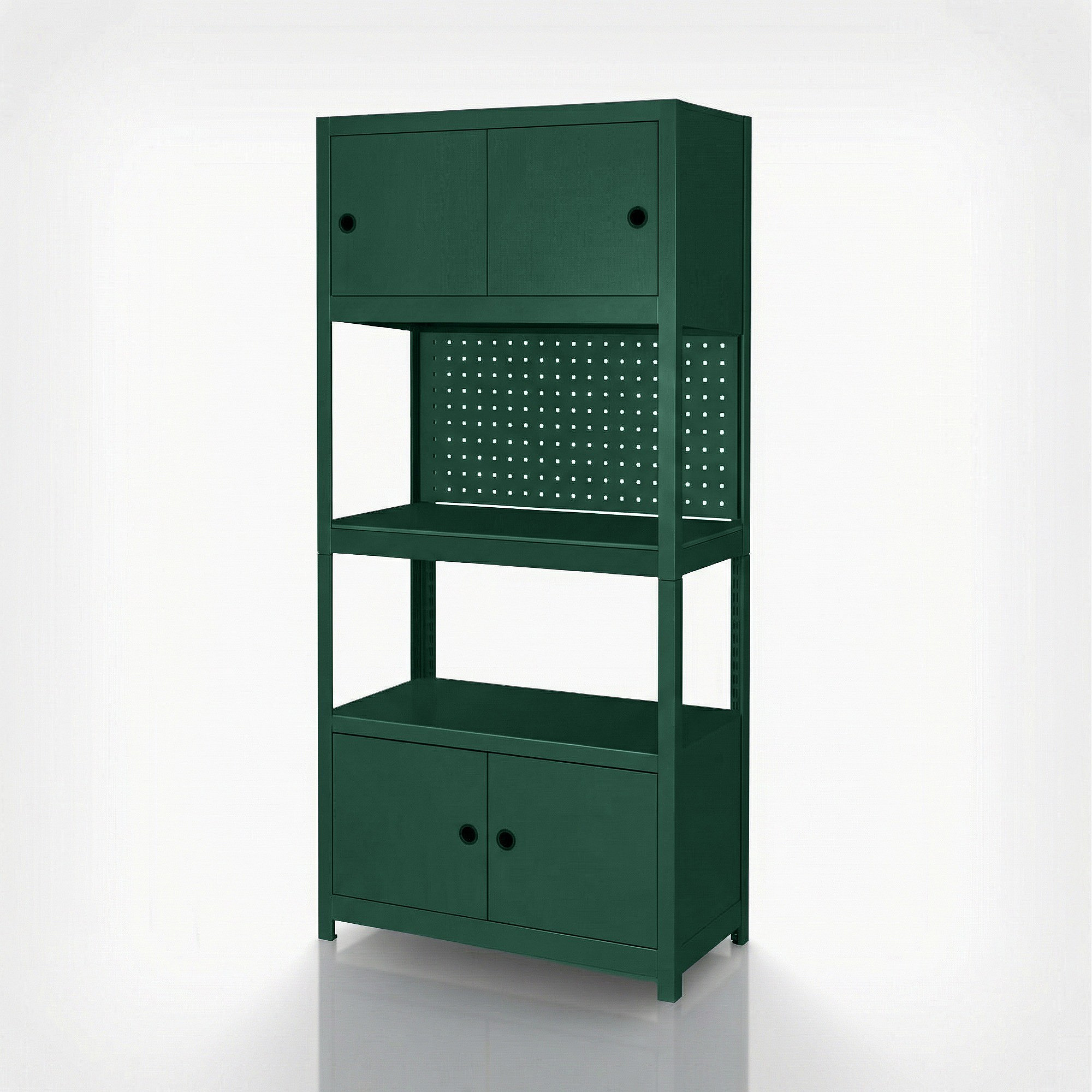 Kovový regál se skříňkami zelený: JOHNNY, 1800 x 800 x 420 mm