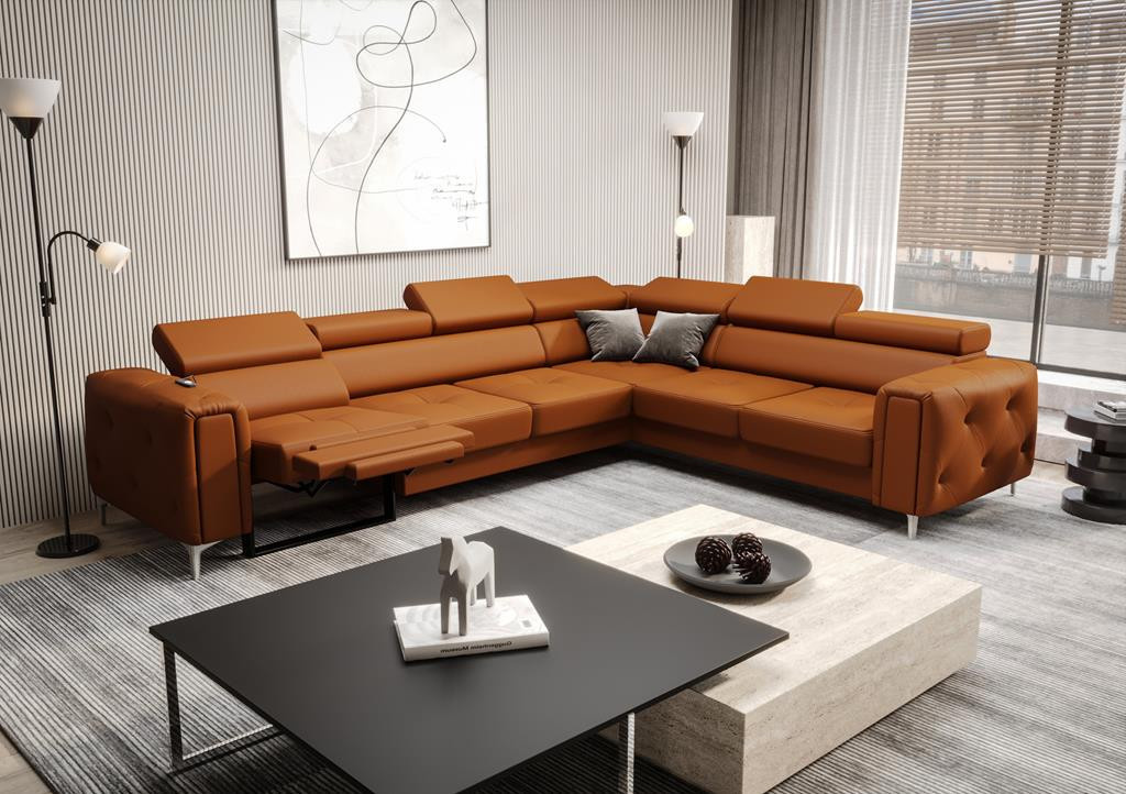 Kožená rohová sedačka s relaxační funkcí Orion I s funkcí spaní, nastavitelnými opěrkami hlavy, ozdobným prošíváním a možností výběru nohou je dokonalým spojením komfortu a elegance. Úložný prostor na ložní prádlo a prošívaná strana ve stylu glamour z něj činí výjimečný kus nábytku, který splní očekávání i těch nejnáročnějších uživatelů. Prohlédni si celou kolekci Orion. Vyberte si rohovou sedačku, která dodá vašemu interiéru jak funkčnost, tak styl.