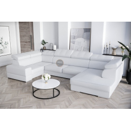 Rohová Kožená sedací souprava s funkcí spaní ROYAL MAX I 210x375x185 - Levá strana, Bílá kůže