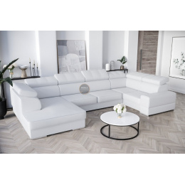 Rohová Kožená sedací souprava s funkcí spaní ROYAL MAX I 210x375x185 - Pravá strana, Bílá kůže