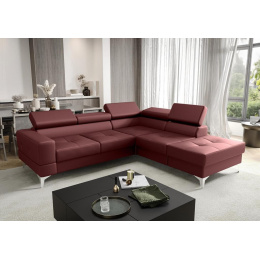 Rohová Kožená sedací souprava s funkcí spaní TOSCANIA II průměr 30x250 - červená , pravá