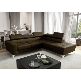 Rohová Kožená sedací souprava s funkcí spaní TOSCANIA II průměr 30x250 - hnědá , pravá