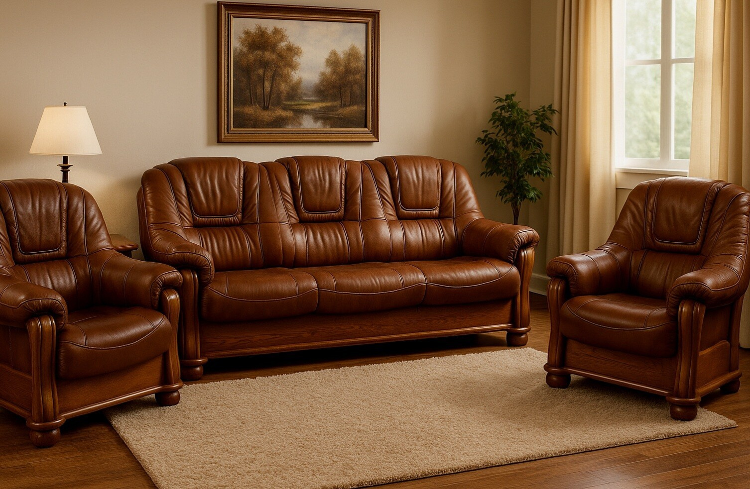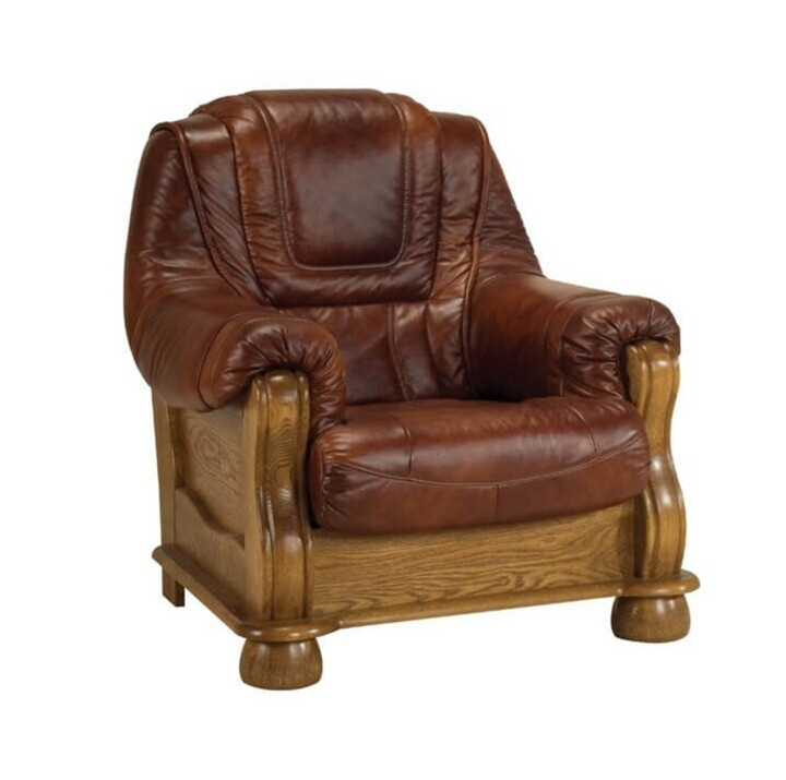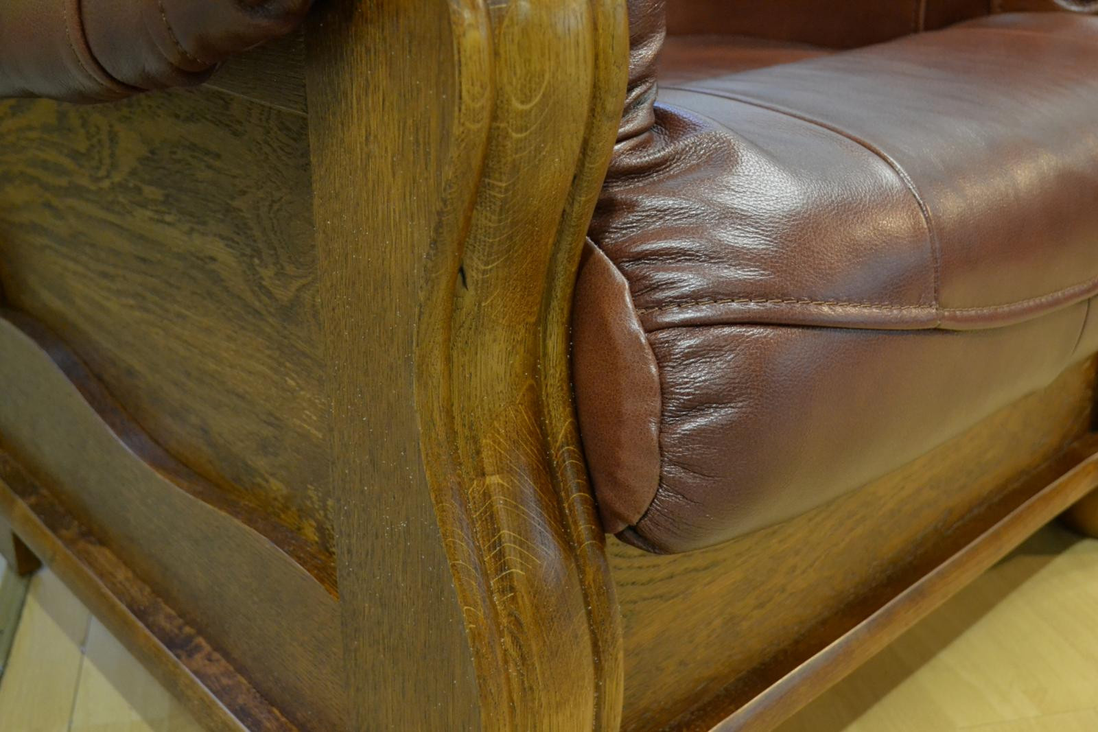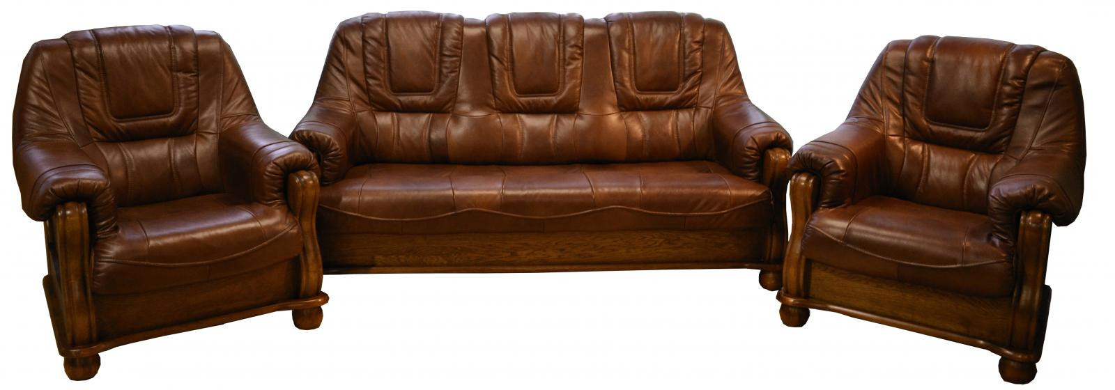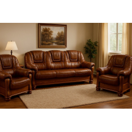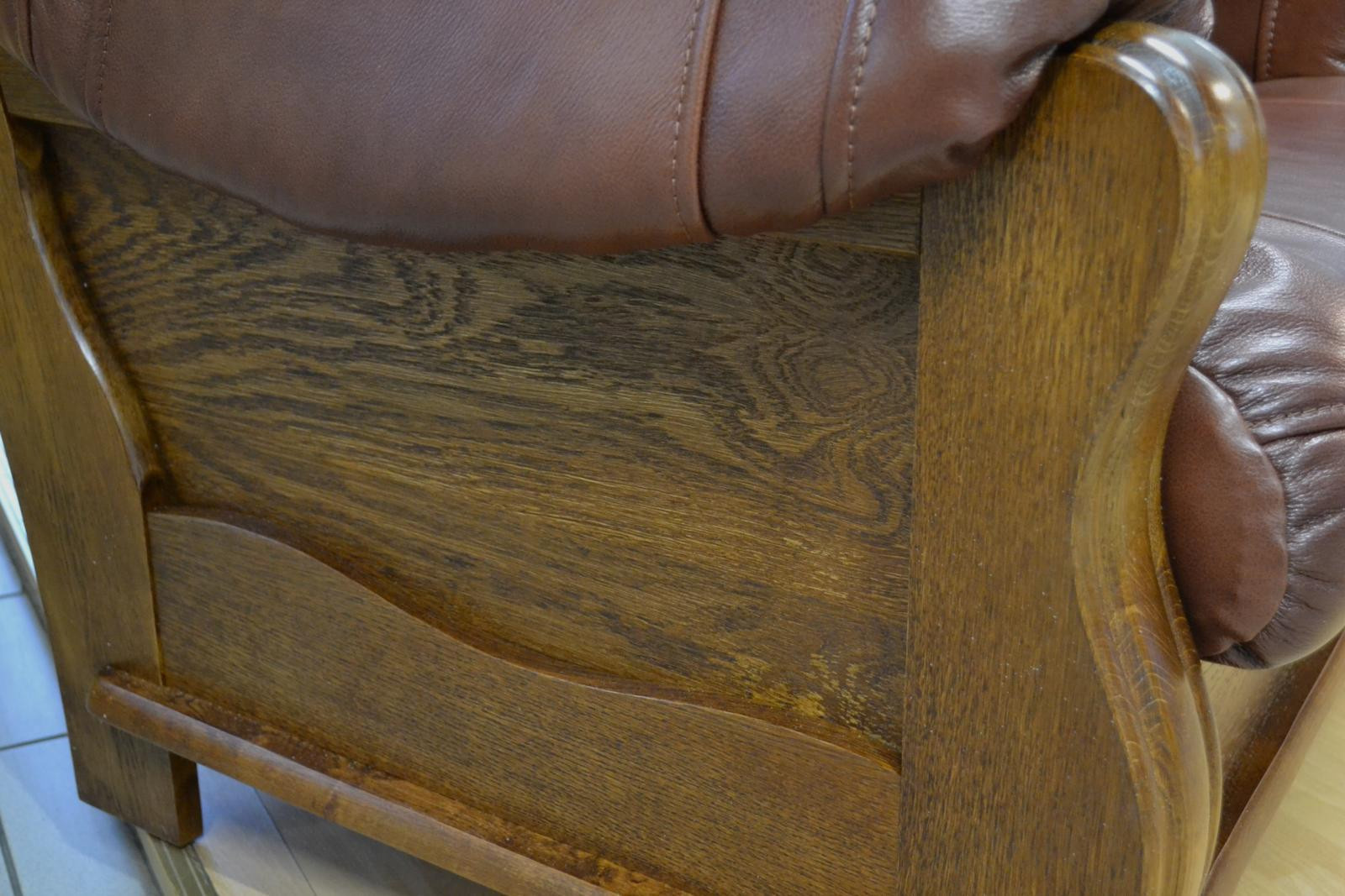Stylová sedací souprava Royal nadchne každého, kdo má v oblibě rustikální nábytek. Její precizní a kvalitní zpracováním Vám zaručí luxus a pohodlí. Jakmile se do ní jednou usadíte, nebude se Vám chtít vstát. Polstrování sedací soupravy je vyrobené z kvalitní hovězí kůže. Konstrukce je vyrobená z masivního dubového dřeva a je vhodná i k umístění do prostoru. Kůži je nutné čistit pouze za pomocí speciálních prostředků na čištění a konzervaci přírodních kůží, dřevo je třeba čistit suchým měkkým hadříkem. Zobrazení barev na fotograii se může od skutečnosti lišit. Vyobrazené dopňky a dekorace nejsou v ceně.