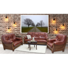Stylová sedací souprava Royal nadchne každého, kdo má v oblibě rustikální nábytek. Její precizní a kvalitní zpracováním Vám zaručí luxus a pohodlí. Jakmile se do ní jednou usadíte, nebude se Vám chtít vstát. Polstrování sedací soupravy je vyrobené z kvalitní hovězí kůže. Konstrukce je vyrobená z masivního dubového dřeva a je vhodná i k umístění do prostoru. Sedací souprava je nerozkládací. Kůži je nutné čistit pouze za pomocí speciálních prostředků na čištění a konzervaci přírodních kůží, dřevo je třeba čistit suchým měkkým hadříkem. Vyobrazené dopňky a dekorace nejsou v ceně.