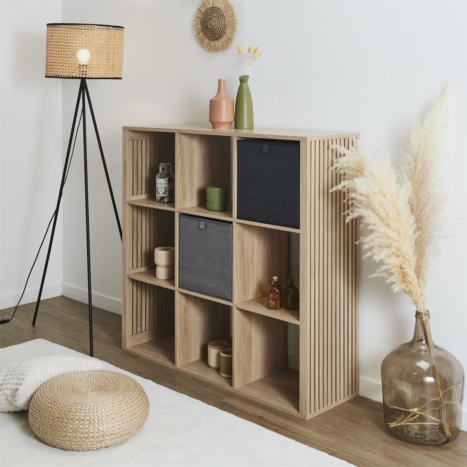 Krabice o rozměrech 30x30x30 cm je ideálním doplňkem polic Kali nebo jiných kubických nábytků. Krabice byla vyrobena z kombinace plastového a kartonového rámu a polyesterové tkaniny na vnější straně. Krabici, když ji nepoužíváme, můžeme složit. kompatibilní s mnoha regály.