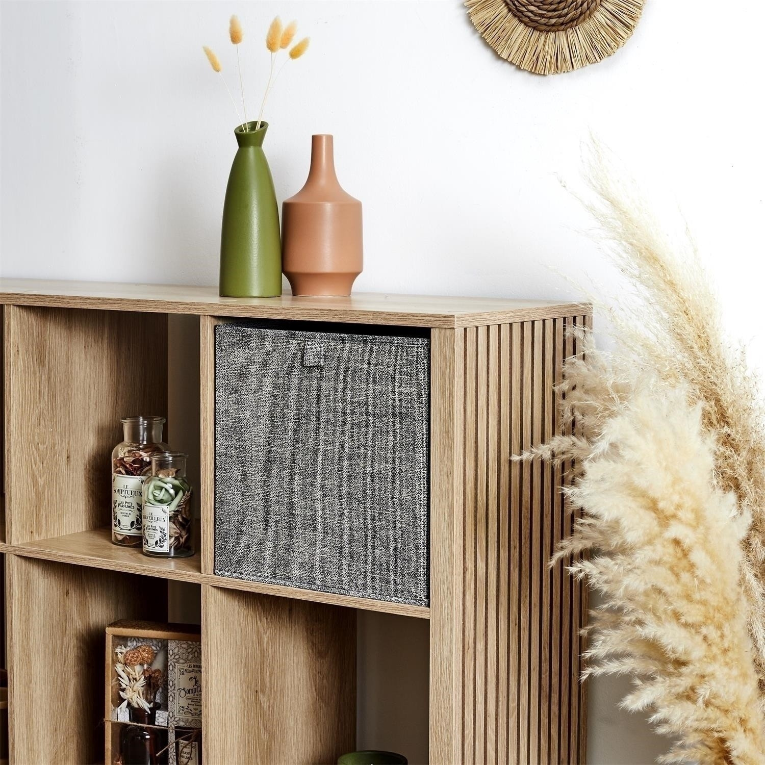Krabice o rozměrech 30x30x30 cm je ideálním doplňkem polic Kali nebo jiných kubických nábytků. Krabice byla vyrobena z kombinace plastového a kartonového rámu a polyesterové tkaniny na vnější straně. Krabici, když ji nepoužíváme, můžeme složit. kompatibilní s mnoha regály.