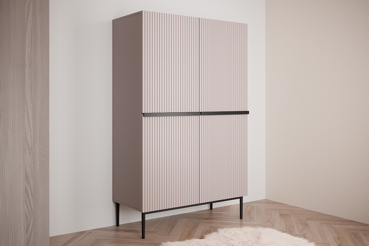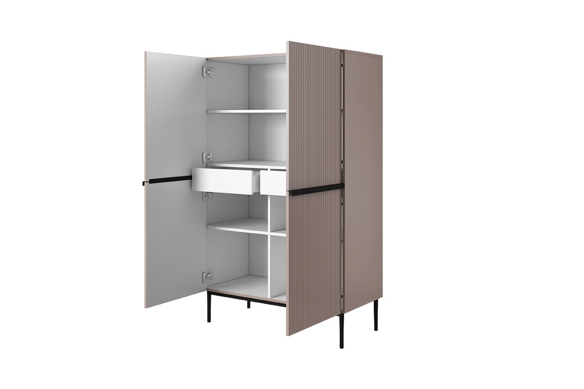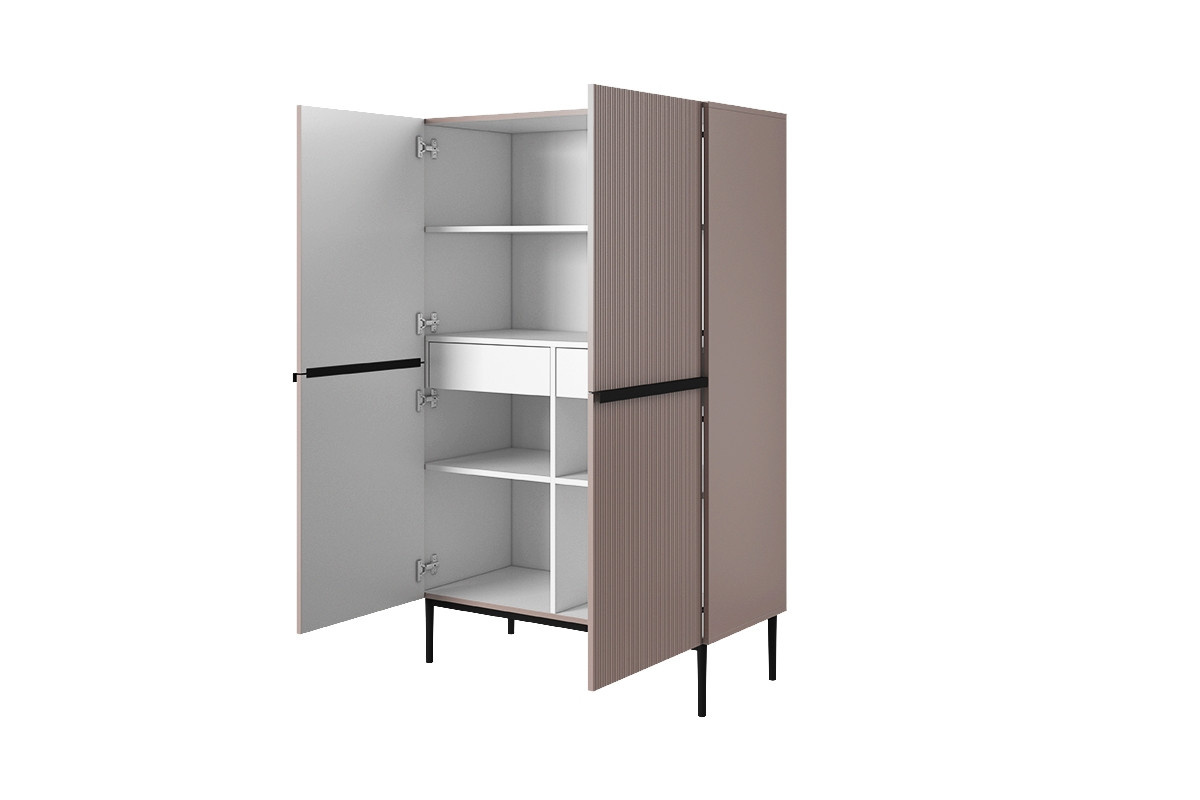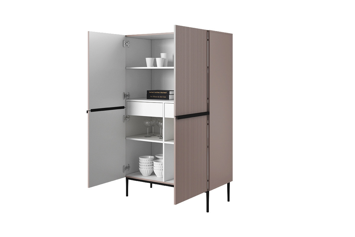 Příborník Nicole - starorůžová MDF / černé nohy, šířka: 100, výška: 160, hloubka: 45, výška nožiček: 20