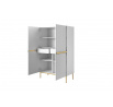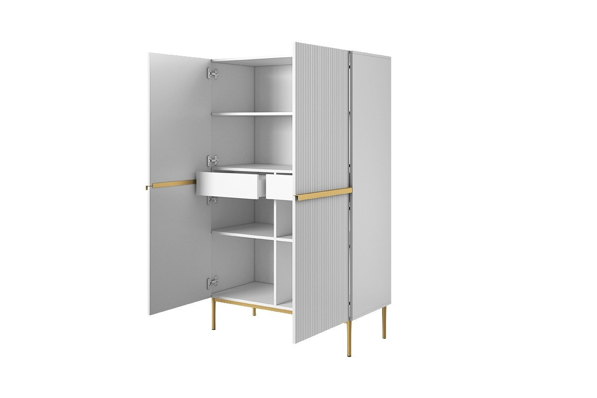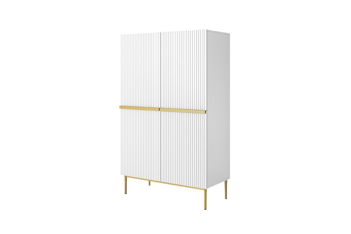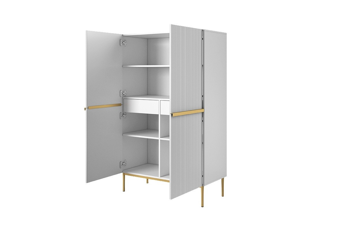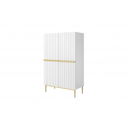 Kredenc Nicole - bílý mat / zlaté nožky, Šířka: 100, Výška: 160, Hloubka: 45, Výška nožek: 20