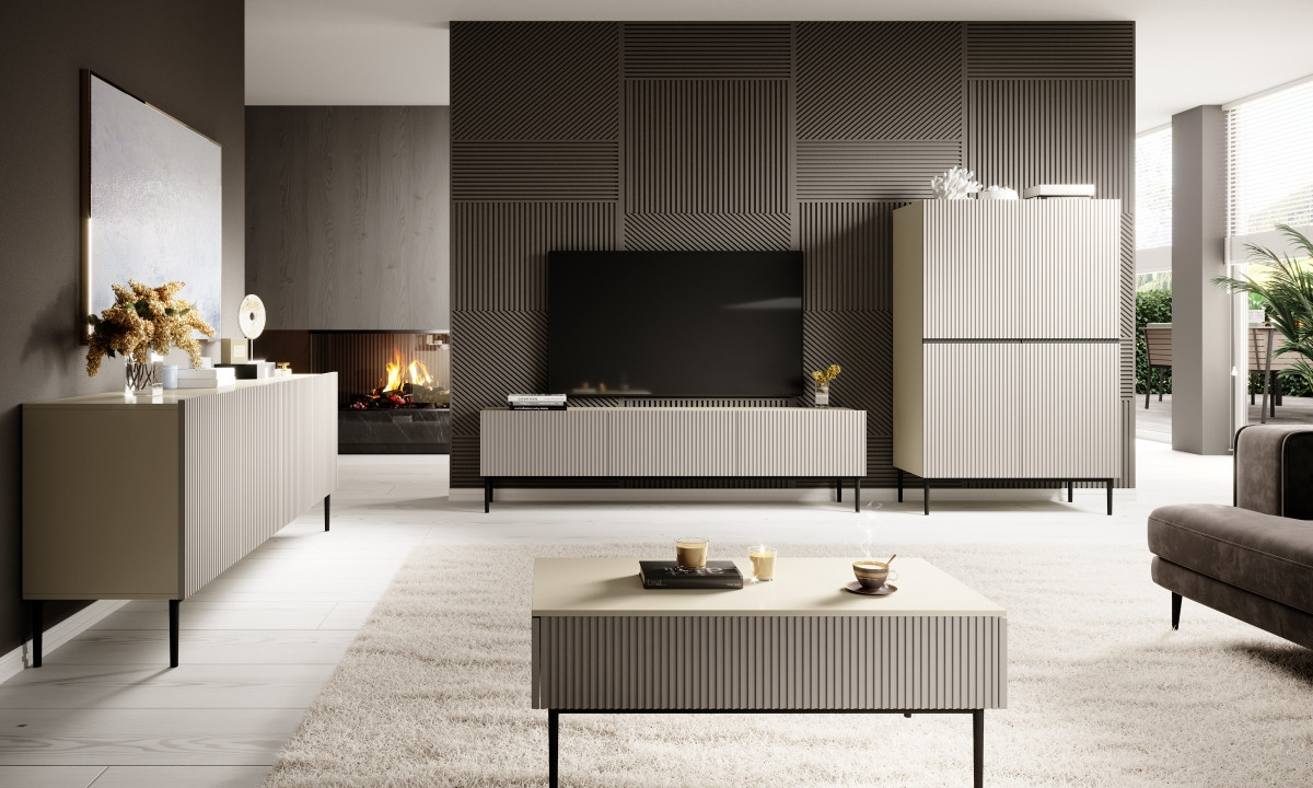 Příborník Nicole - kašmír / černé nohy, šířka: 100, výška: 160, hloubka: 45, výška nohou: 20