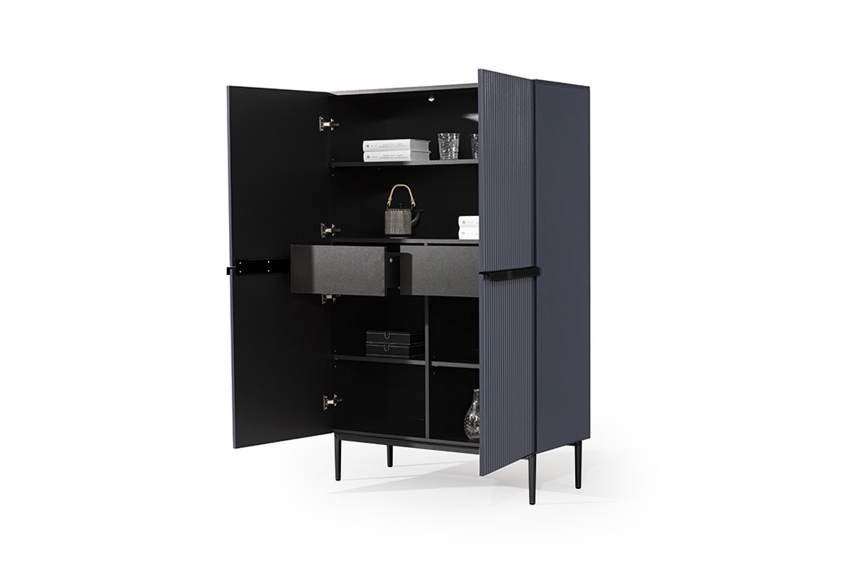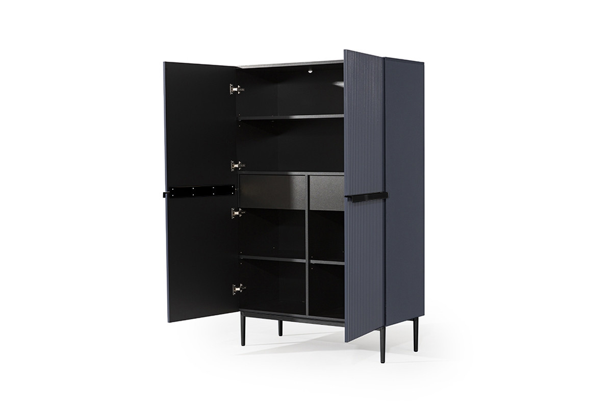 Nicole příborník - MDF tmavě modrá / černé nohy, šířka: 100, výška: 160, hloubka: 45, montáž: samostatná