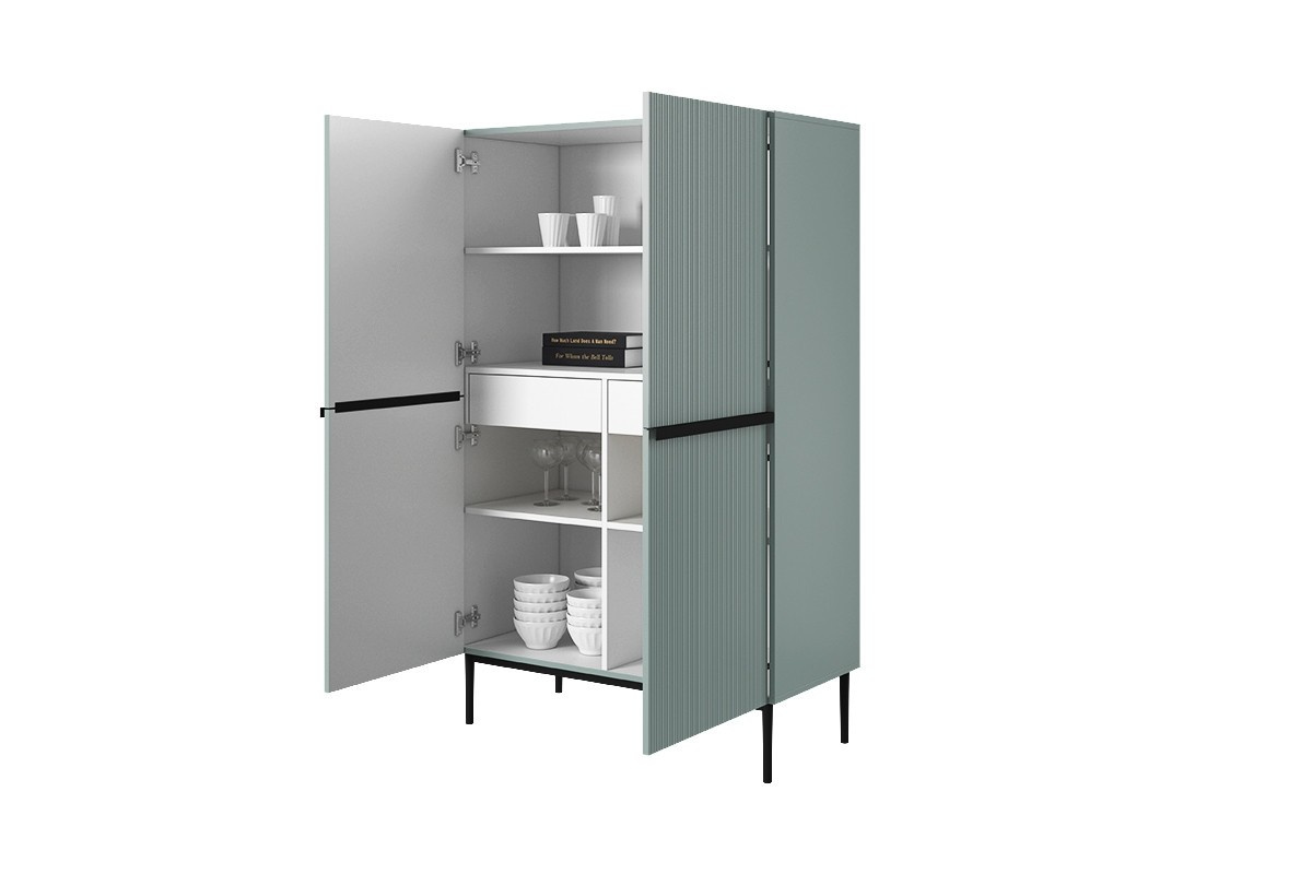 Kredenc Nicole - šalvěj MDF / černé nožky, Šířka: 100, Výška: 160, Hloubka: 45, Montáž: Samostatná