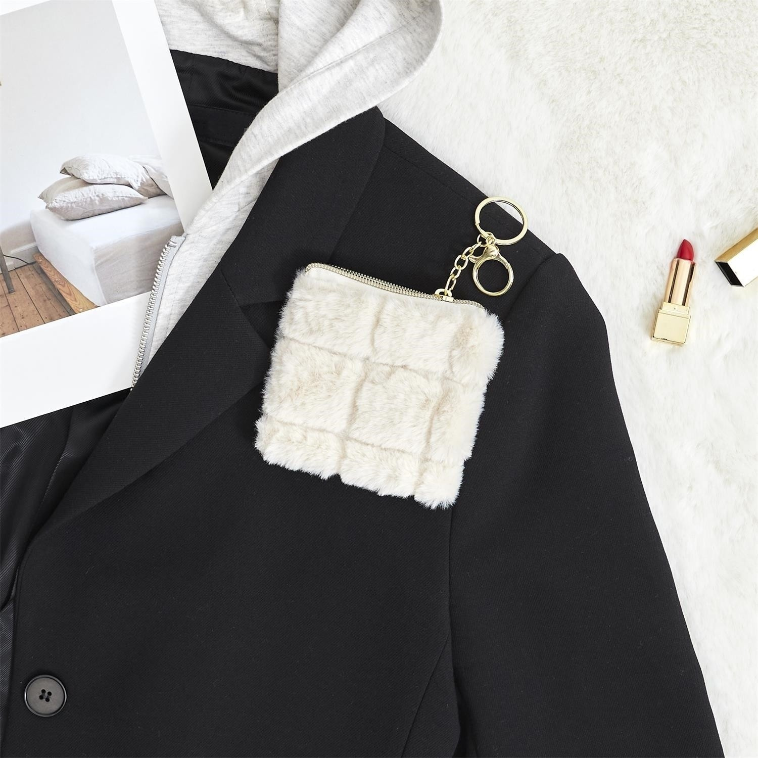 Stylová a elegantní peněženka v krémové barvě, vyrobená z měkké kožešiny, která dodává luxusní akcent každému outfitu. Kompaktní, a přitom prostorný, ideální pro ukládání hotovosti, karet a drobných předmětů. Jeho jemný design a měkká textura z něj činí vynikající volbu pro každodenní nošení nebo jako módní doplněk pro speciální příležitosti.