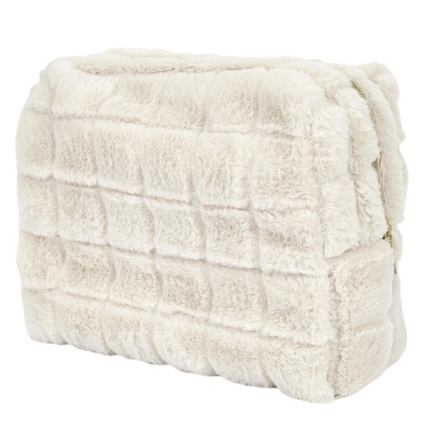 Krémová chlupatá kosmetická taštička