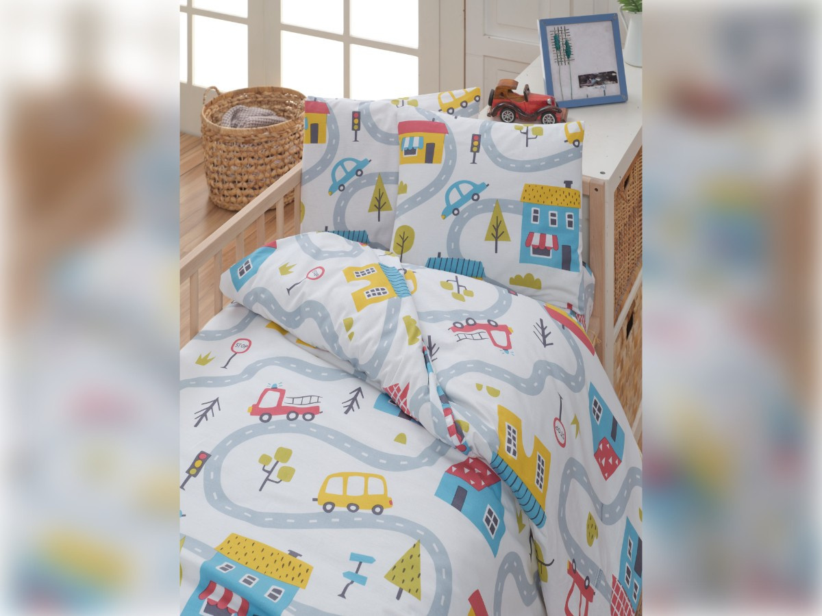 Krepové dětské povlečení do malé postýlky 90x135, 45x60 cm Městečko