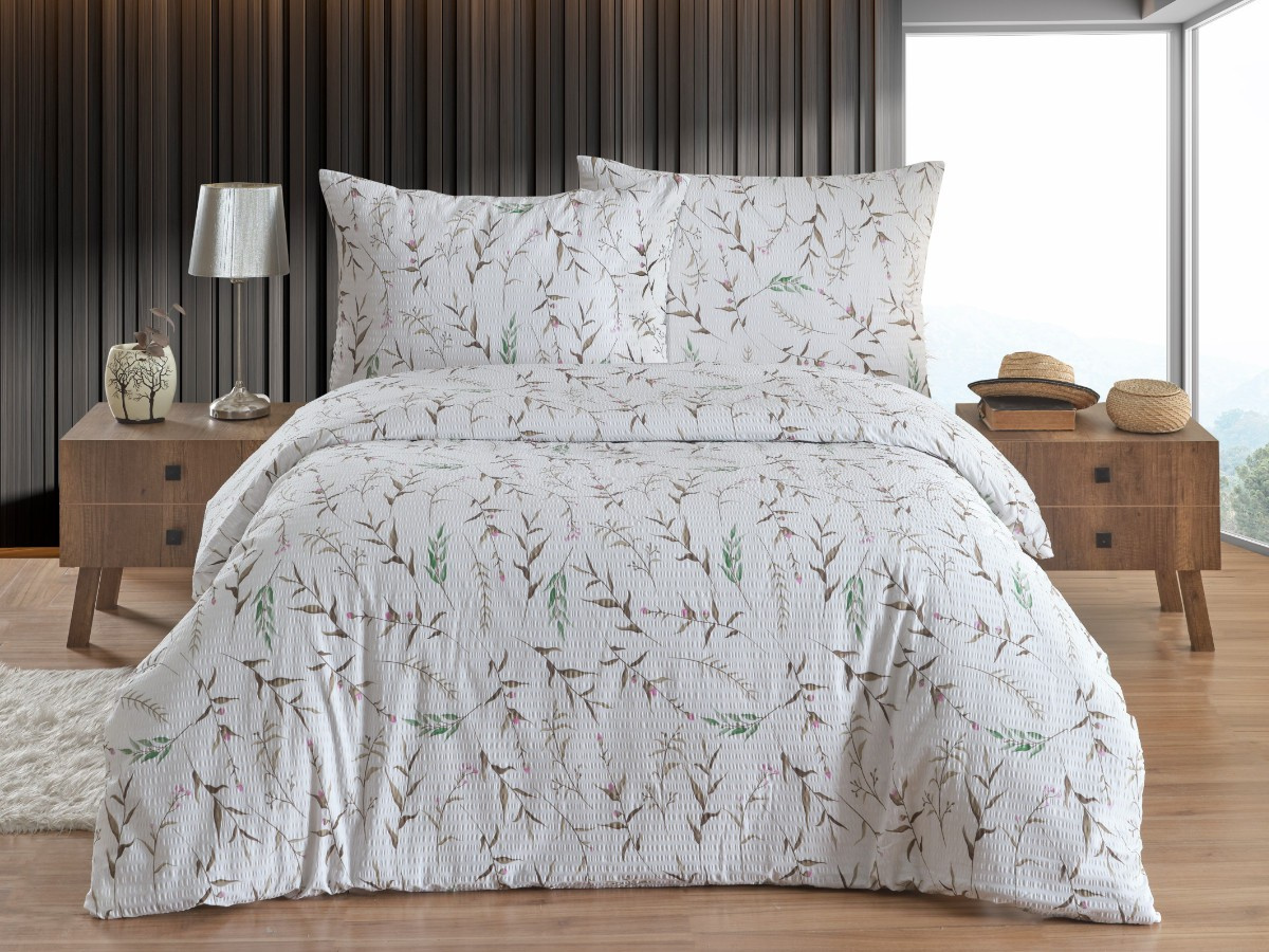 Povlak krep je vyroben z velmi jemné 100% bavlněné tkaniny o plošné hmotnosti tkaniny 130g/m2. Krepování je vytvořeno pomocí speciální úpravy. Díky tomuto krepování se povlečení nemusí žehlit. Tkanina má vysokou hustotu velmi jemných přízí a pro tyto své vlastnosti je velice jemná a příjemná na omak. Povlak je vyroben s rozměrovou rezervou pro vysrážení po vyprání.