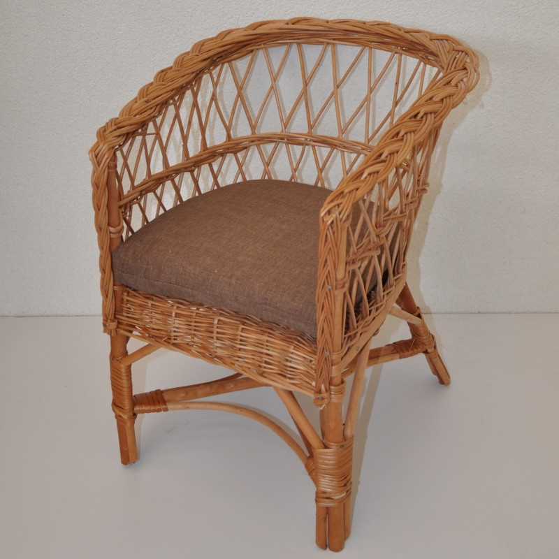 Dětské křesílko vyrobené z přírodního vrbového proutí. | Barva dětského křesílka je přírodní. Velikost křesílka je 35x35x48 cm. Výška sedu je 28 cm. Křesílko dodáváme včetně polstru, který je plněný dutým polyesterovým vláknem.