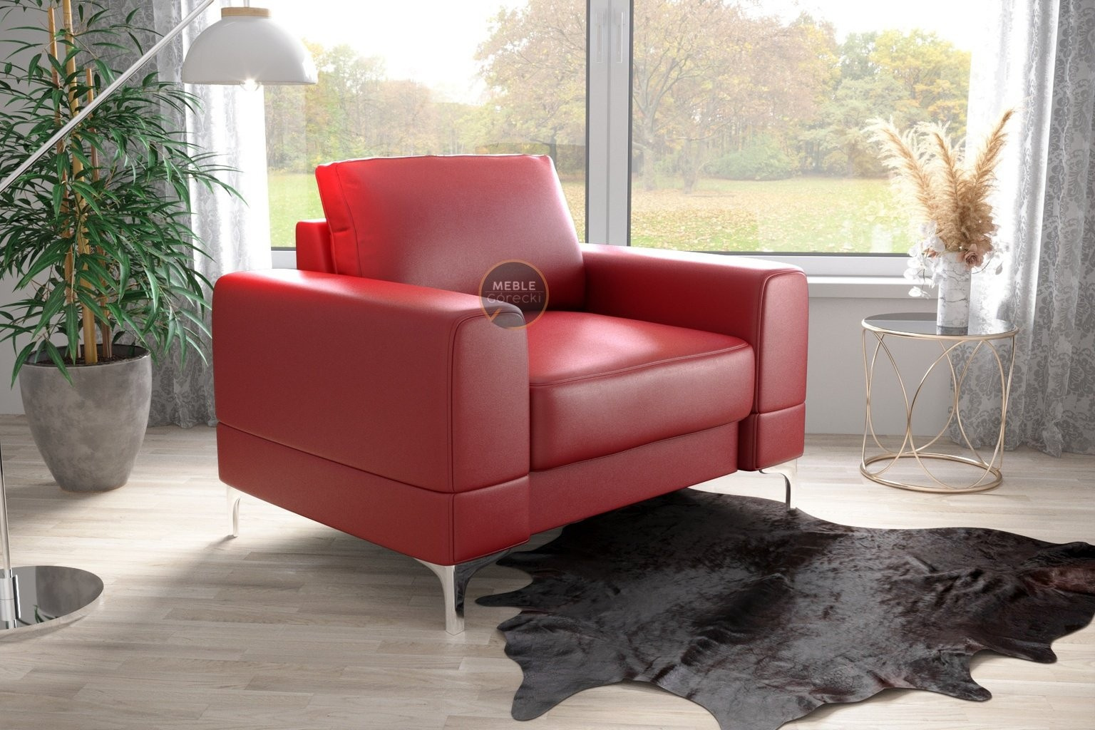 Křeslo v kůži ARIA 112 cm přírodní kůže - červená kůže
