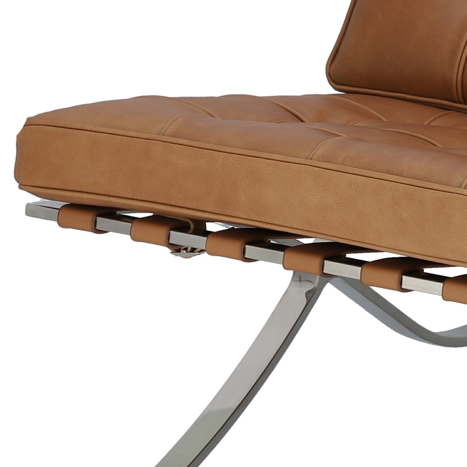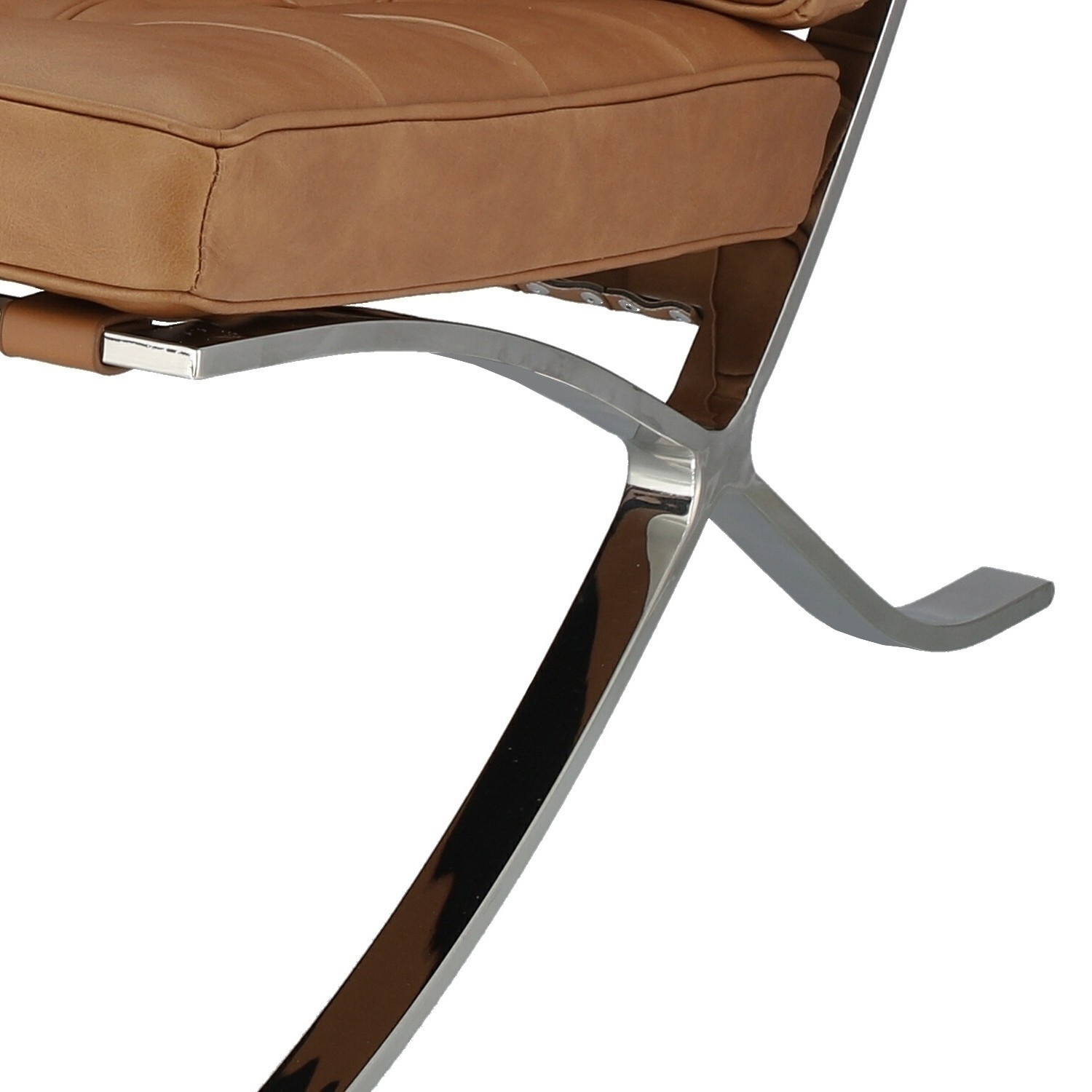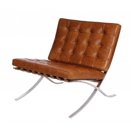 Křeslo BA1 je inspirováno designem křesla Barcelona. Barcelona je křeslo navržené v roce 1929, které bylo vytvořeno na zakázku a umístěno v německém pavilonu na výstavě v Barceloně.Charakteristicky ohnutá do tvaru písmene "X" chromovaná základna a čtvercově prošívaná přírodní kůže jsou nejcharakterističtějšími rysy tohoto křesla. Doplňkem tohoto křesla je Barcelona Ottoman a Barcelona stolek.,Křeslo vyrobené zcela z přírodní kůže.