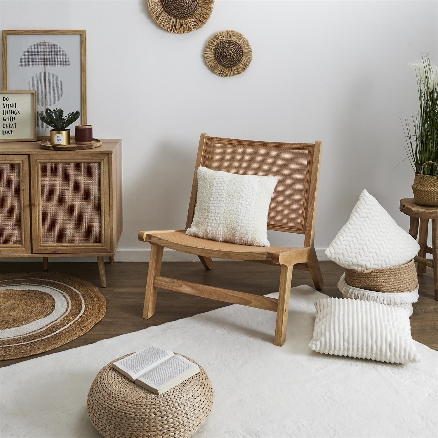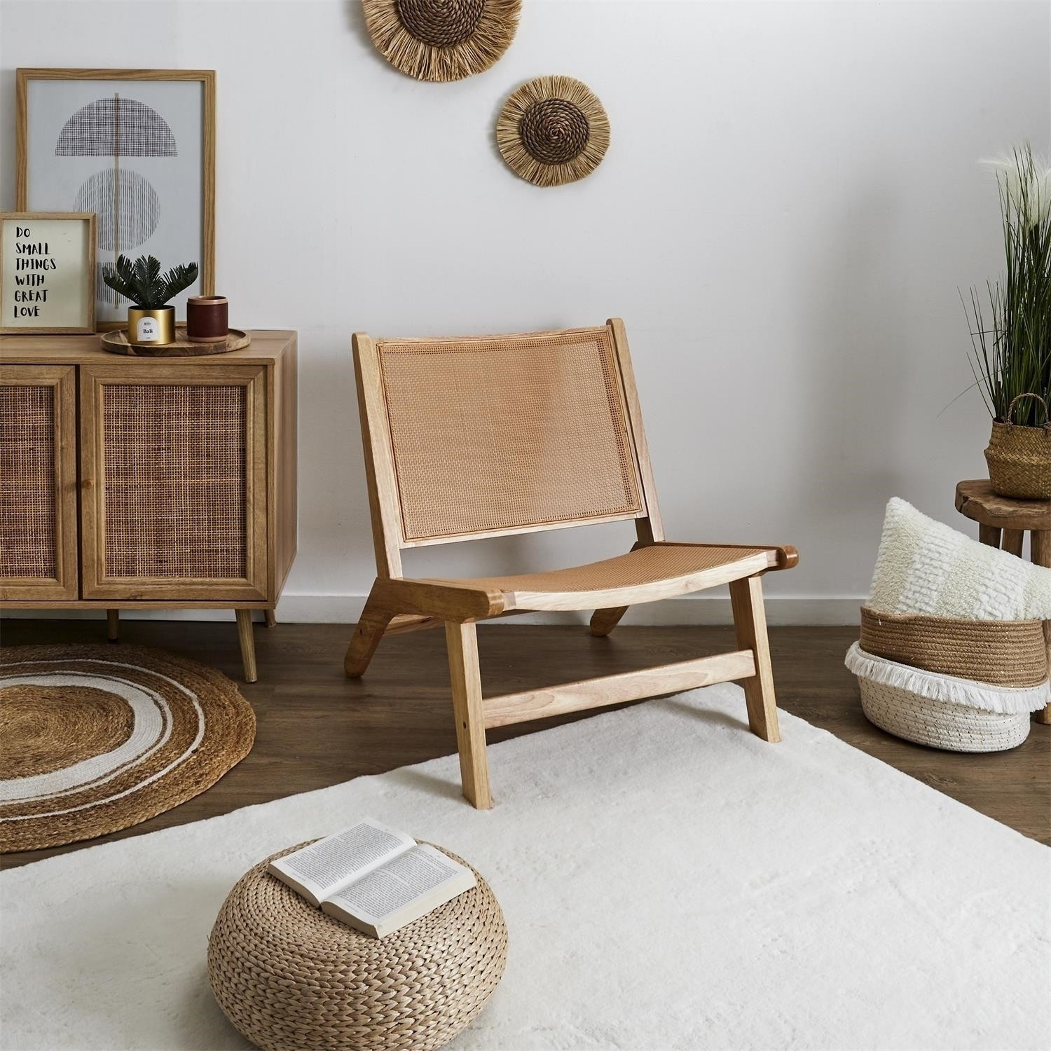 Křeslo Bali přírodní je elegantní a pohodlný nábytek, který vnáší do interiéru atmosféru relaxace a klidu. Vyrobený z přírodních materiálů, jako je dřevo a výplet, se vyznačuje jednoduchým, ale stylovým designem, ideálním pro moderní a boho aranžmá. Jeho ergonomický design zajišťuje pohodlí a jasná, přirozená barevnost se skvěle hodí k různým typům interiérového designu. Křeslo Bali je vynikající volbou pro osoby, které si cení jak estetiky, tak funkčnosti. Hmotnost: 7 kg Materiál: Kaučukové dřevo, PE