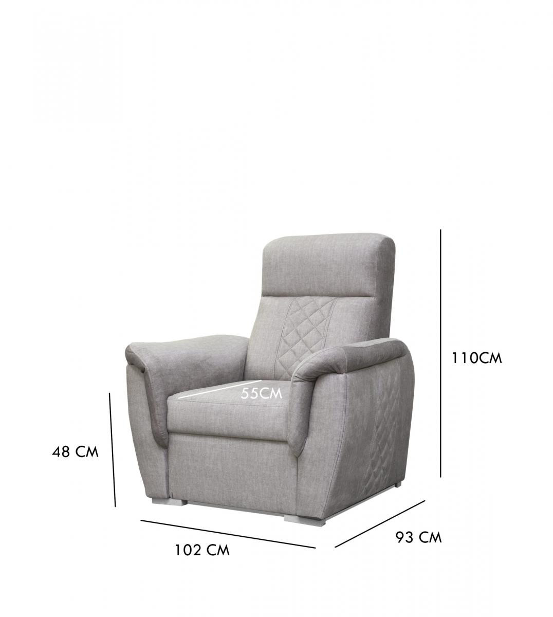 Křeslo Billy poskytuje vysoký komfort sezení a může být doplňkem k sedací soupravě Billy. Má dostatečně vysoká záda, což zajišťuje jak oporu pro záda, tak i podporu při opření hlavy. Křeslo je potaženo kvalitní látkou Soro, která je dostatečně odolná a pevná. Látka je měkká, prodyšná, snadno absorbuje vlhkost a také odolává dennímu světlu a netvoří žmolky. Vyobrazené doplňky a dekorace nejsou v ceně sedací soupravy. Zobrazení barev na fotografii se může od skutečnosti nepatrně lišit.