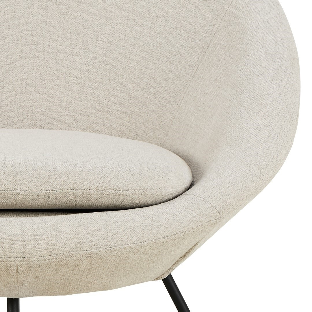 Organický tvar tohoto relaxačního křesla přitahuje pozornost a představuje stylový přístup ke komfortu. Podtržený kulatým, čalouněným sedákem a černou křížovou základnou, křeslo podpírá tělo, poskytuje místo pro nečinné chvíle. Čalouněné béžovou tkaninou, vyzařuje teplo a hodí se do moderních interiérů. Křeslo Center, látka Apia béžová 453, základna černá matná ocel lakovaná práškovou barvou. Výška opěradla 44 cm Šířka sedáku 52 cm Hloubka sedáku 53 cm Výška područky od podlahy 62 cm Šířka područky 7 cm Hloubka područky 40 cm Výška područky 30 cm