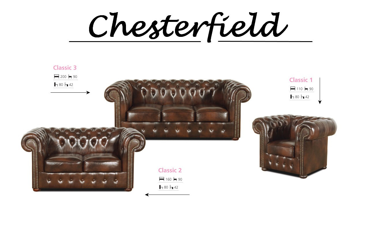 Objevte nadčasovou eleganci a prvotřídní pohodlí s koženými křesly a pohovkami Chesterfield. Každý detail od klasického hlubokého prošívání až po luxusní pravou hovězí kůži zaručuje jedinečný styl, který povýší váš domov či komerční prostor na novou úroveň. Vynikající řemeslné zpracování zaručuje nejen krásu, ale i dlouhou životnost. Pohovky Chesterfield jsou k dispozici v různých velikostech od křesel, dvoumístných a třímístných pohovek, až po prostorné čtyřmístné, rohové a atypické varianty.