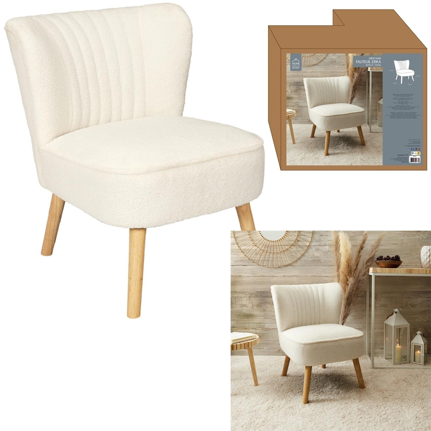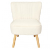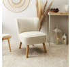 Pohodlné křeslo ušák v bílé tkanině bouclee je nábytek jak pro klidný odpočinek, tak pro čtení knih nebo kojení. Křeslo s nízkým sedákem a hlubokým opěradlem zaručuje klid a pohodlí. Křeslo na dřevěných, točených, kaučukových nožkách v přírodní barvě se dokonale hodí do interiérů v moderním, boho, japandi i skandinávském stylu. Ozdobná, bílá tkanina vyrobená ze 100% polyesteru s měkkou strukturou přidává na komfortu. Křeslo váží 9 kg. Max. zatížení křesla 110 kg. Vyžaduje snadnou montáž (přišroubování nohou). Nestohuje se. Není vhodné pro venkovní použití. Tloušťka pěny na sedáku 24 kg/m3. Tloušťka pěny na opěradle: 24kg/m3