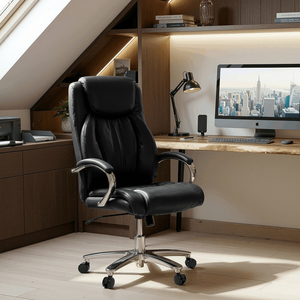 Kancelářské křeslo značky Autronic v elegantní černé barvě přináší komfort a styl do vaší kanceláře nebo domácí pracovny. Čalounění z hladké ekokůže je nejen estetické, ale také snadno udržovatelné. Křeslo je vybaveno houpacím mechanismem a nastavitelnou výškou pro maximální pohodlí při práci. Stabilní kovový kříž s kolečky na tvrdé povrchy zaručuje dlouhou životnost a snadnou mobilitu. Čalouněné pevné područky poskytují extra oporu během sezení. Perfektní kombinace funkčnosti a moderního designu.